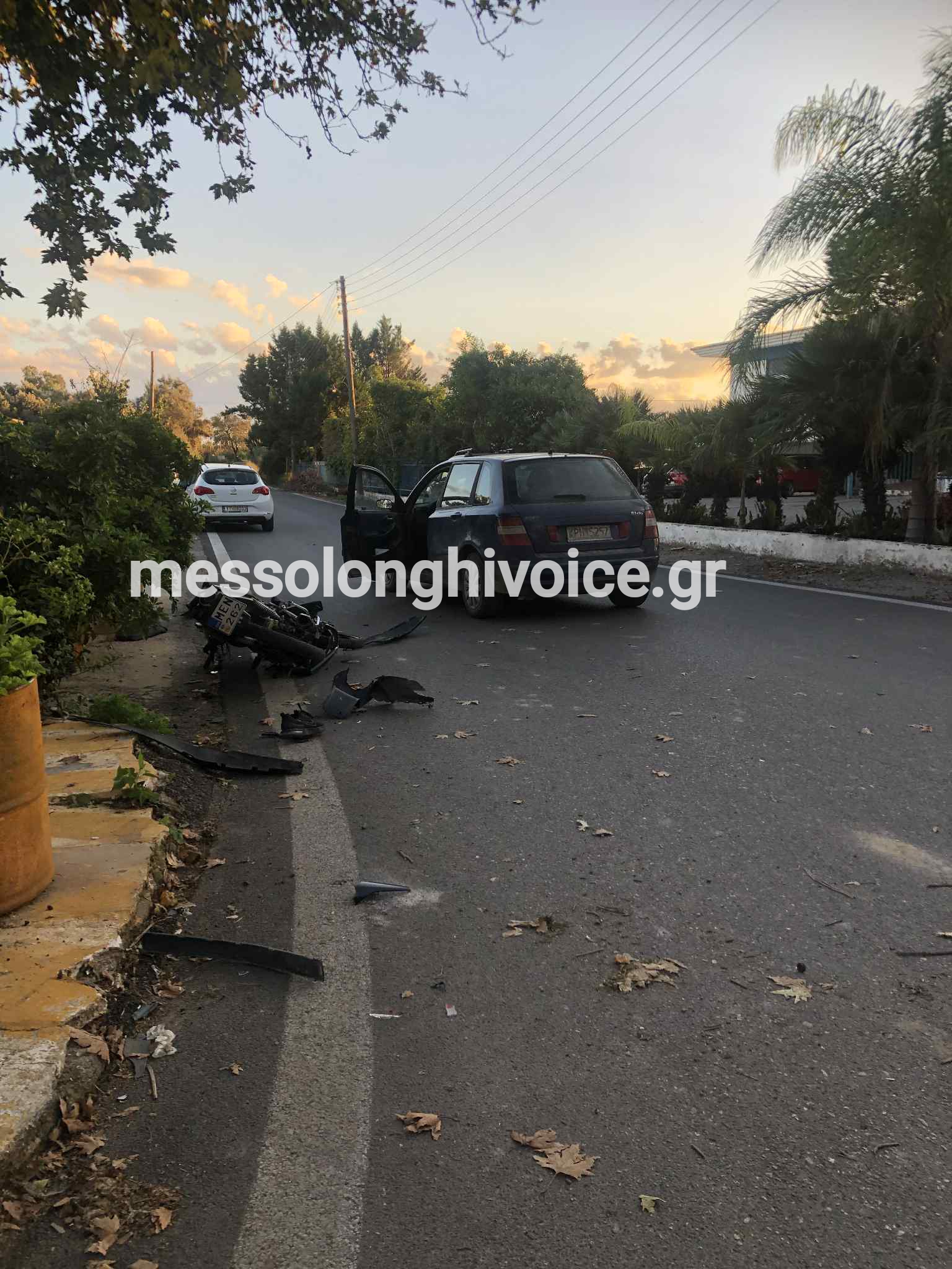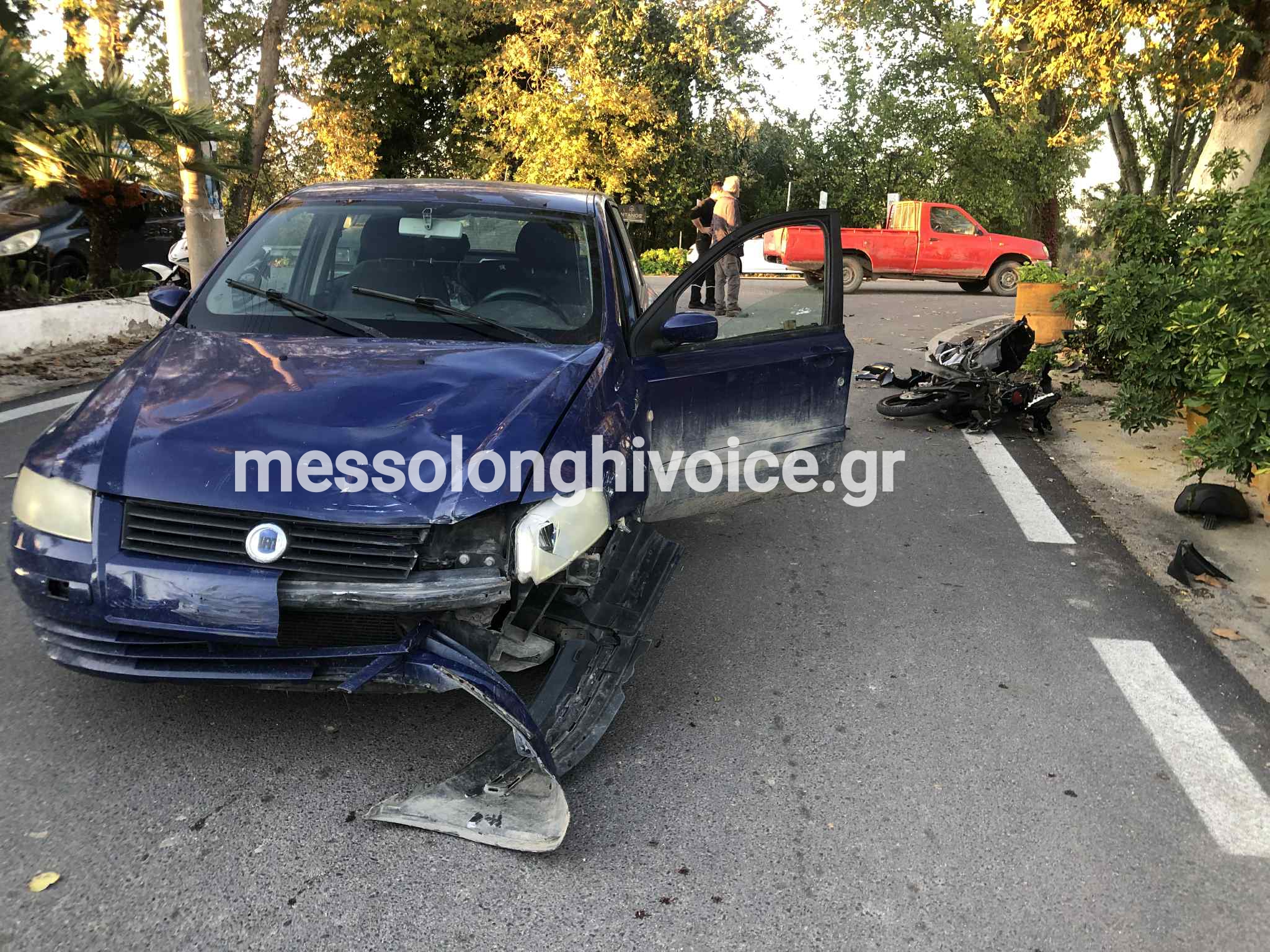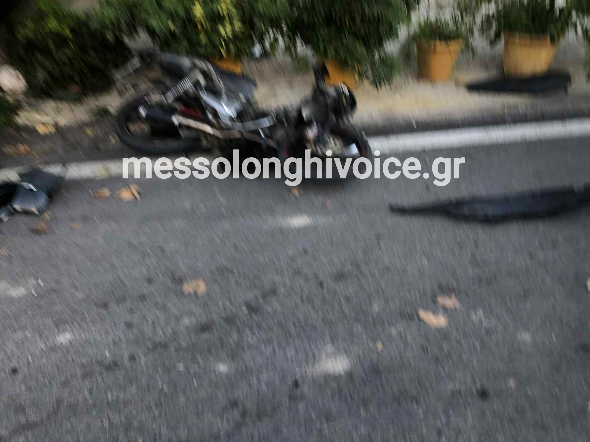 Από τη σύγκρουση τραυματίστηκε ο οδηγός του δικύκλου, ο οποίος μεταφέρθηκε με ασθενοφόρο του ΕΚΑΒ Μεσολογγίου στο νοσοκομείο για τις πρώτες βοήθειες.