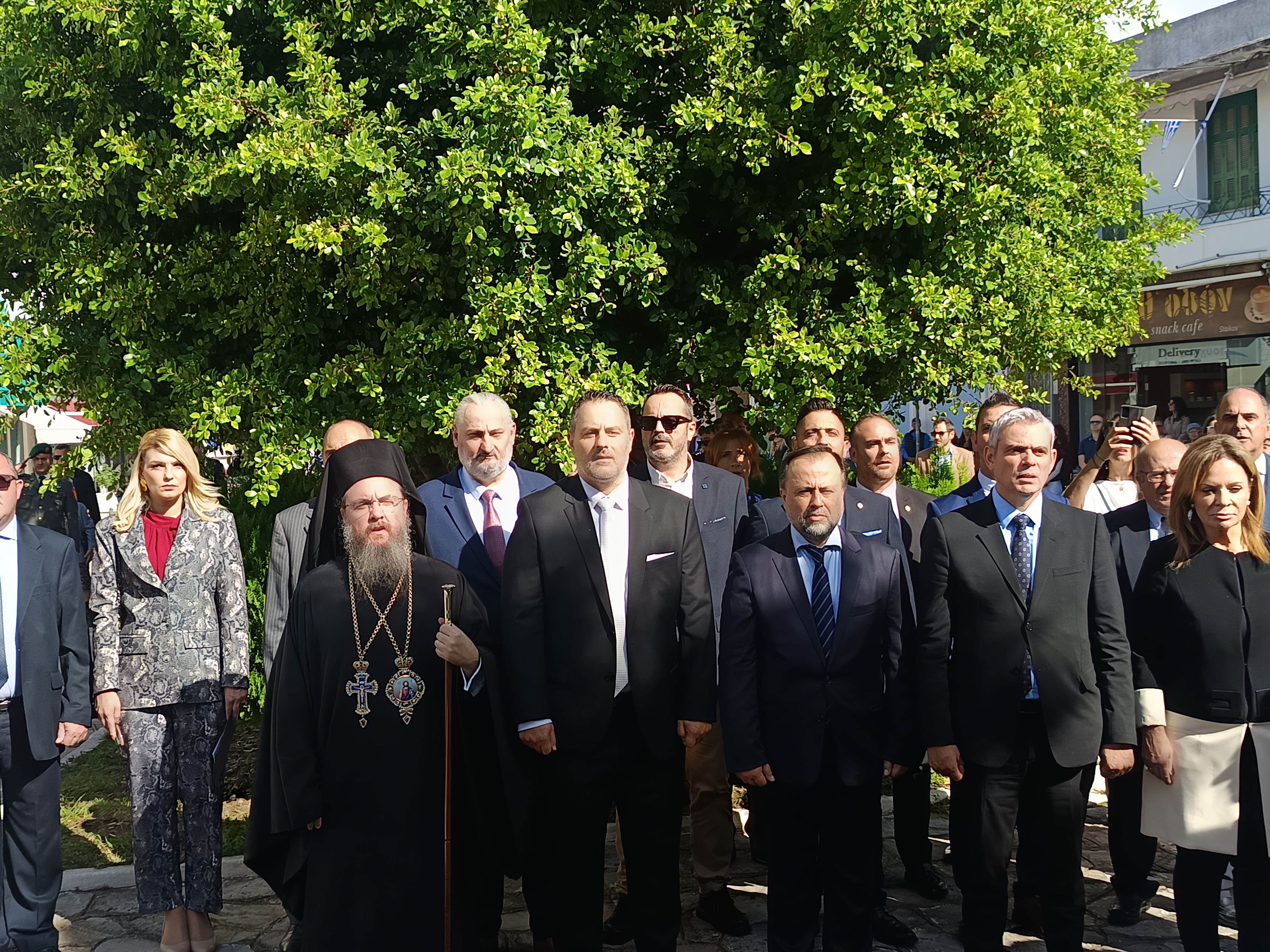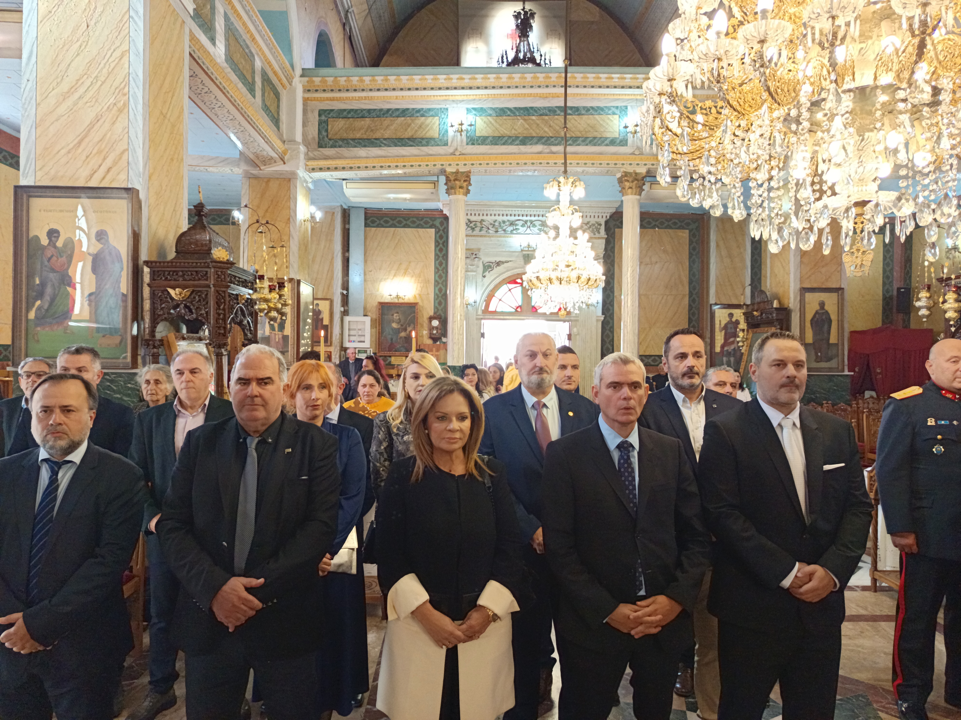 Αμέσως μετά ο Σεβασμιώτατος προεξήρχε της επιμνημόσυνης δέησης που τελέσθηκε στο Ηρώο Πεσόντων των τελευταίων πολέμων. Ακολούθησε η κατάθεση στεφάνων από τους εκπροσώπους των τοπικών αρχών.