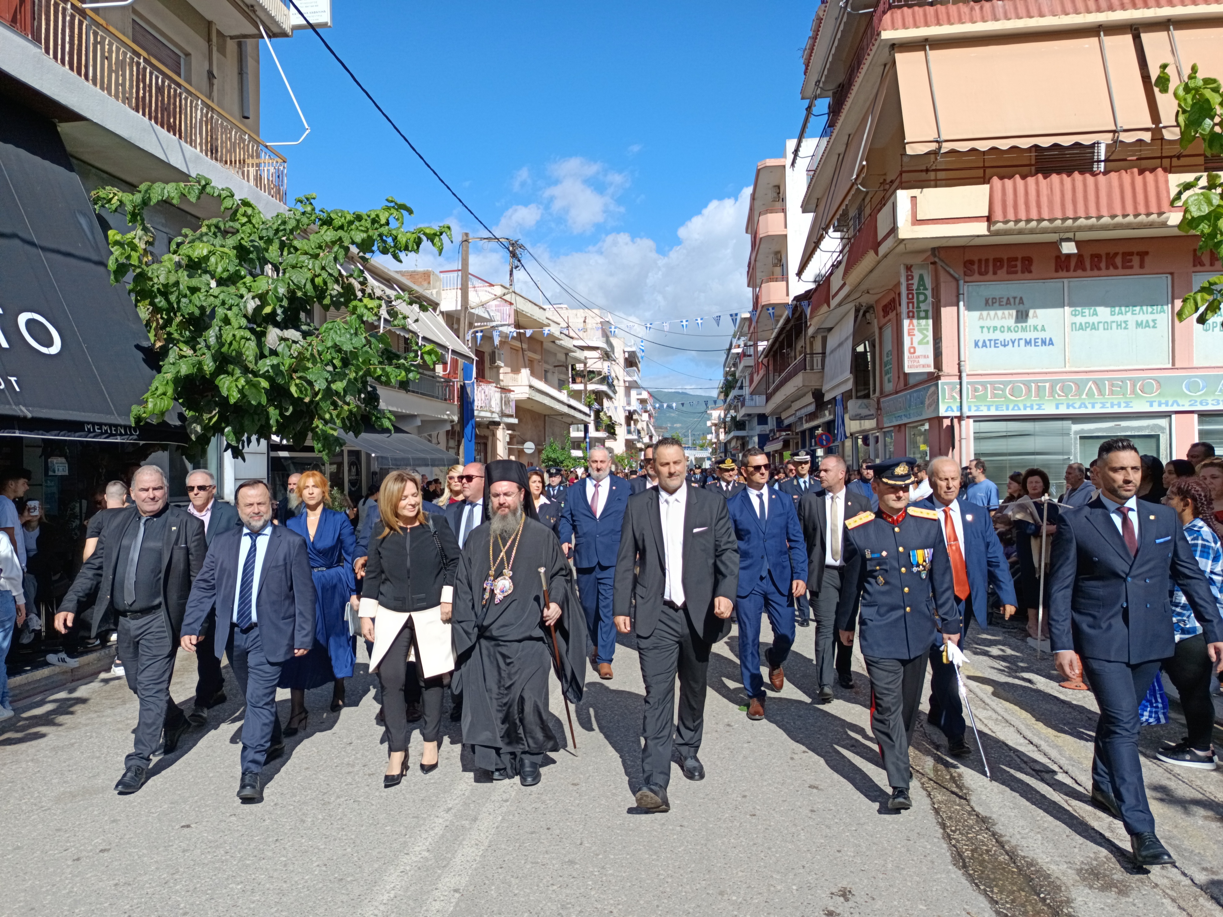 Ακολούθως, από την εξέδρα των επισήμων, ο Μητροπολίτης Αιτωλίας και Ακαρνανίας παρακολούθησε την μαθητική και στρατιωτική παρέλαση.