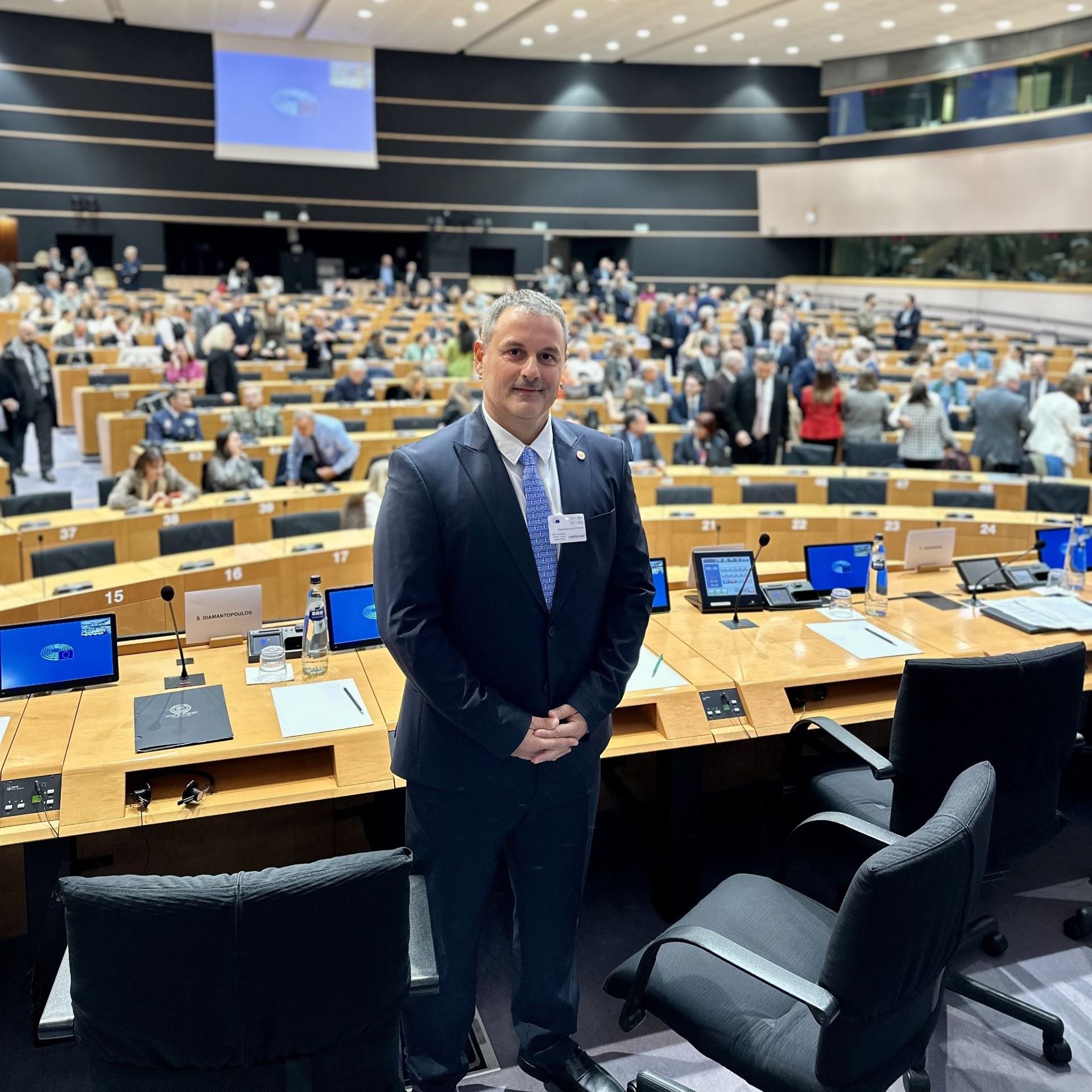 Στην εκδήλωση παρέστησαν, μεταξύ άλλων, ο Ευρωπαίος Επίτροπος Βιώσιμων Μεταφορών και Τουρισμού, Απόστολος Τζιτζικώστας, ο Μόνιμος Αντιπρόσωπος της Ελλάδας στην Ε.Ε., Πρέσβης Ιωάννης Βράιλας, ο επικεφαλής της κοινοβουλευτικής ομάδας του Ευρωπαϊκού Λαϊκού Κόμματος στο Ευρωπαϊκό Κοινοβούλιο, Μάνφρεντ Βέμπερ —ο οποίος απηύθυνε χαιρετισμό— καθώς και ο Αντιπεριφερειάρχης Αιτωλοακαρνανίας, Θανάσης Μαυρομμάτης. Παρόντες ήταν επίσης Έλληνες και ξένοι Ευρωβουλευτές, η Βουλευτής Αιτωλοακαρνανίας Χριστίνα Σταρακά, ο Αντιδήμαρχος Πολιτισμού & Οικονομικών Δημήτρης Πετρόπουλος, η Καθηγήτρια Ευρωπαϊκής Ενοποίησης του Πανεπιστημίου Πειραιώς Φωτεινή Ασδεράκη, καθώς και Μεσολογγίτες και εκπρόσωποι συλλόγων.