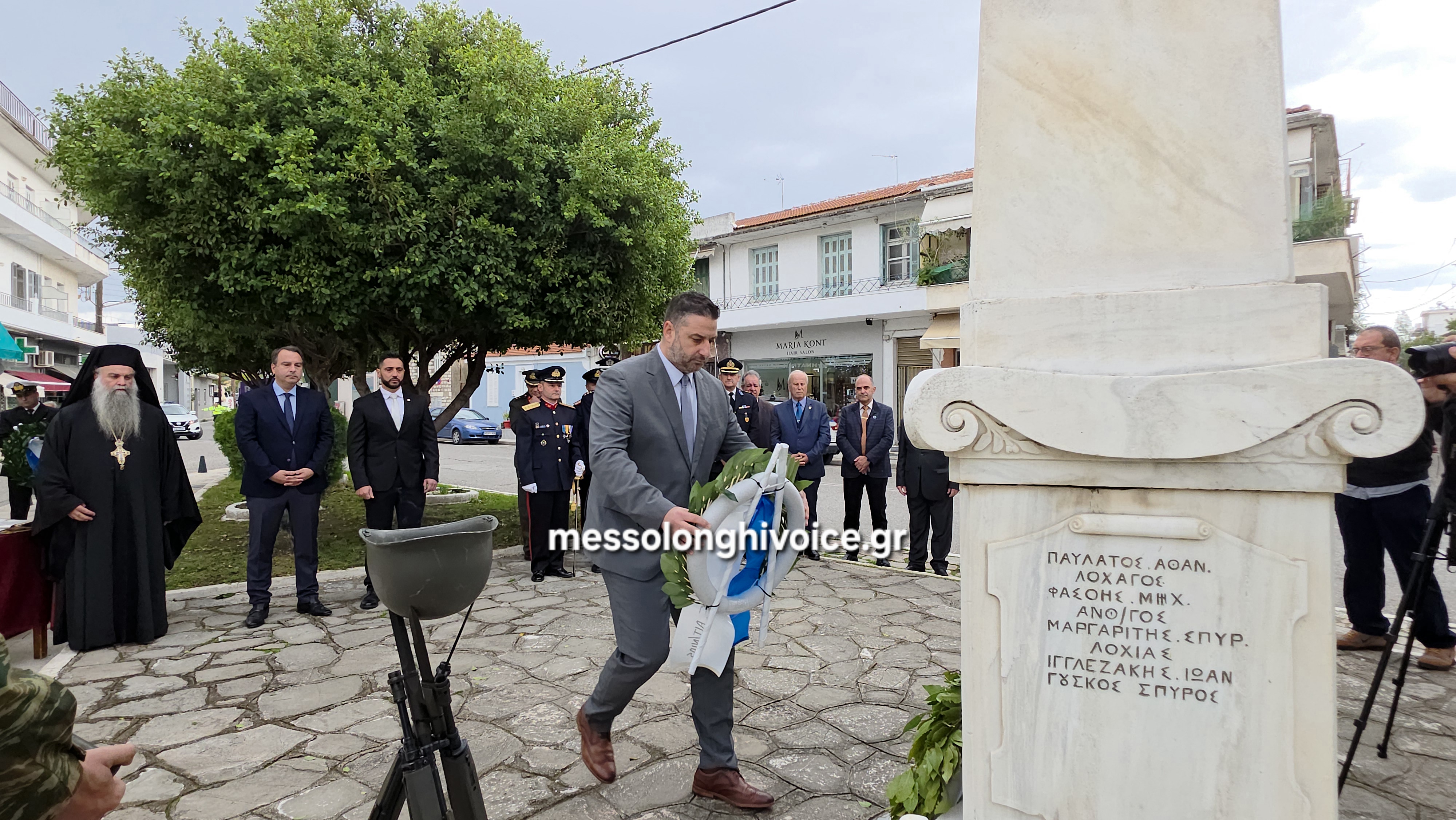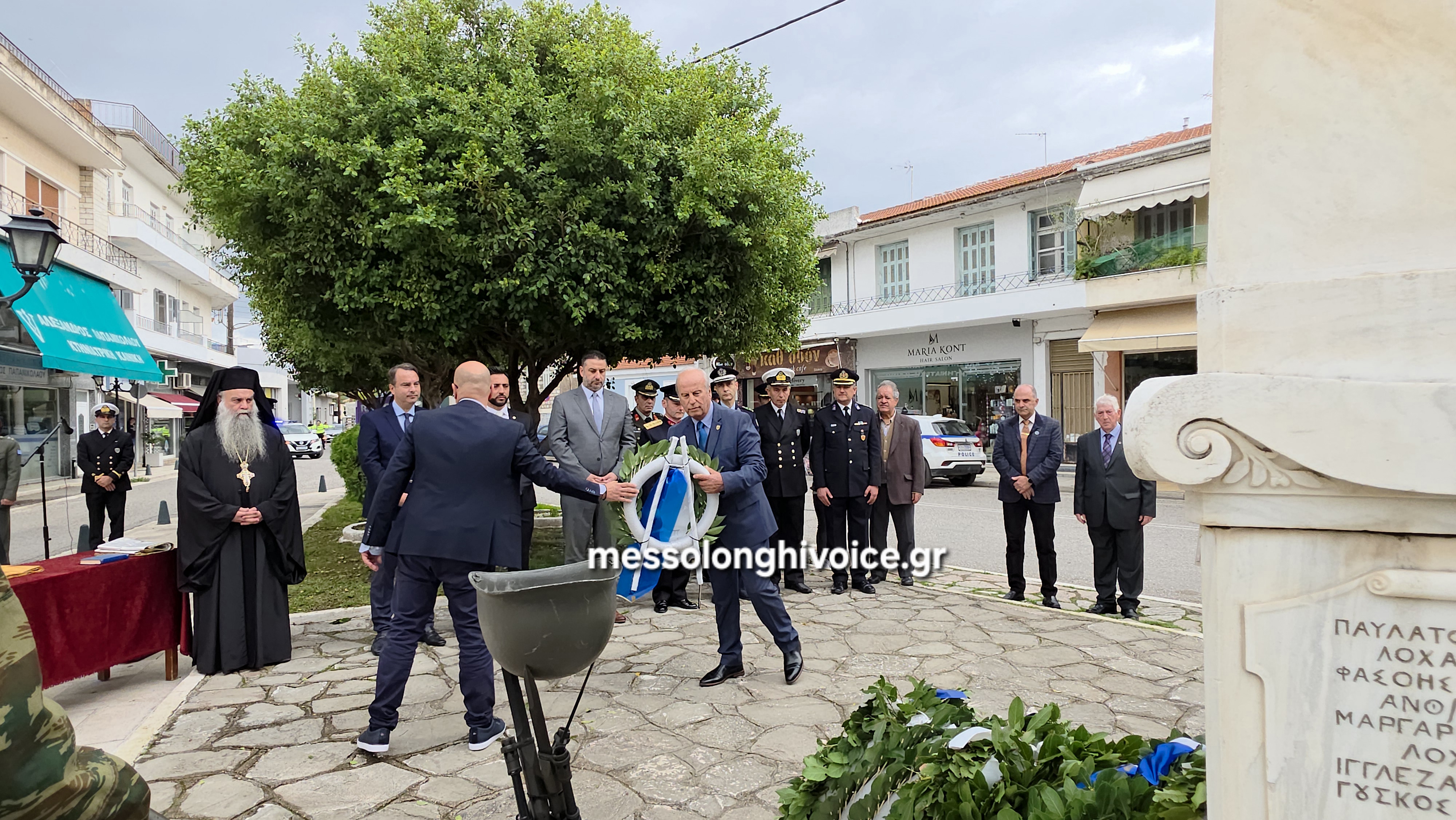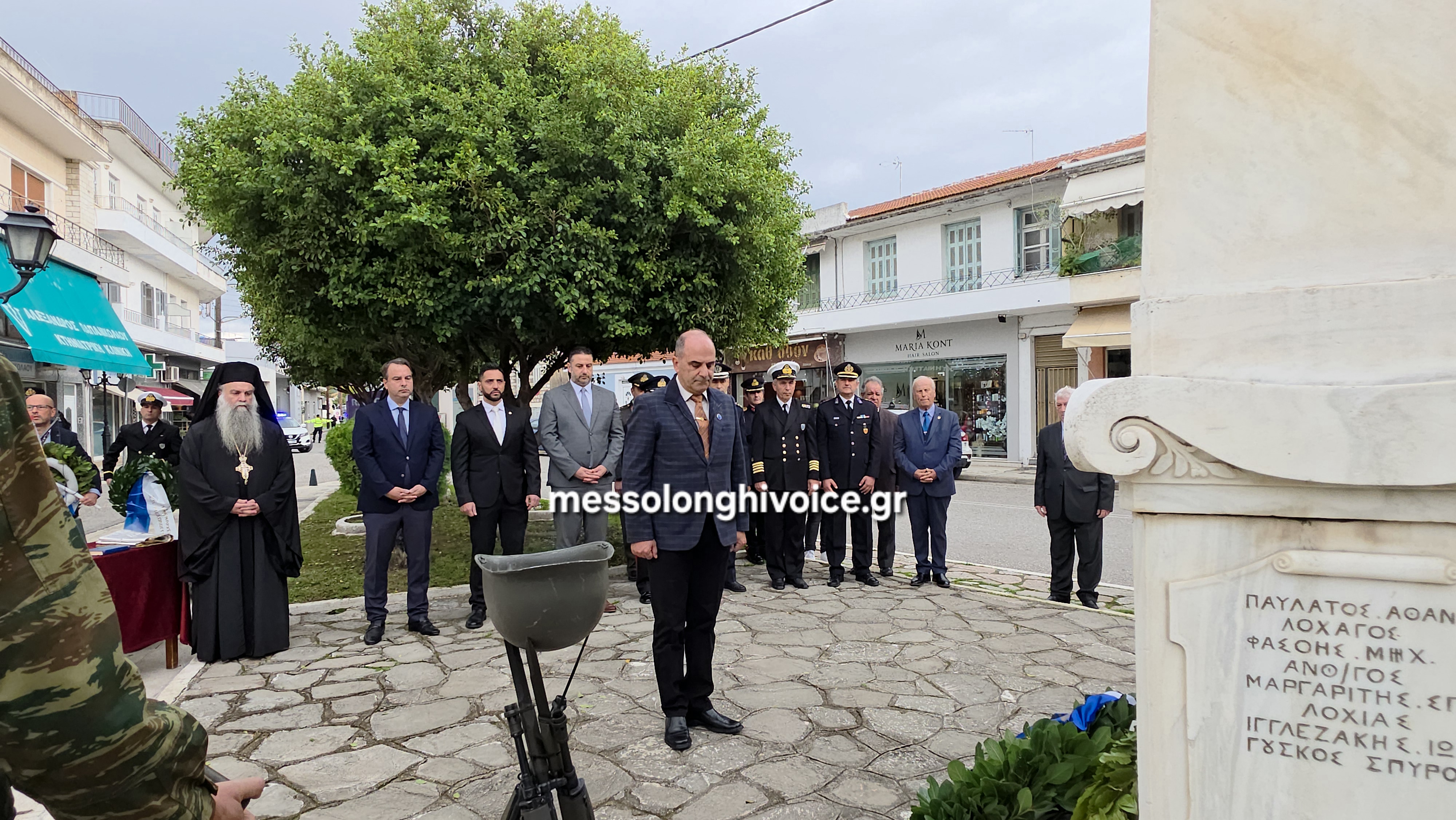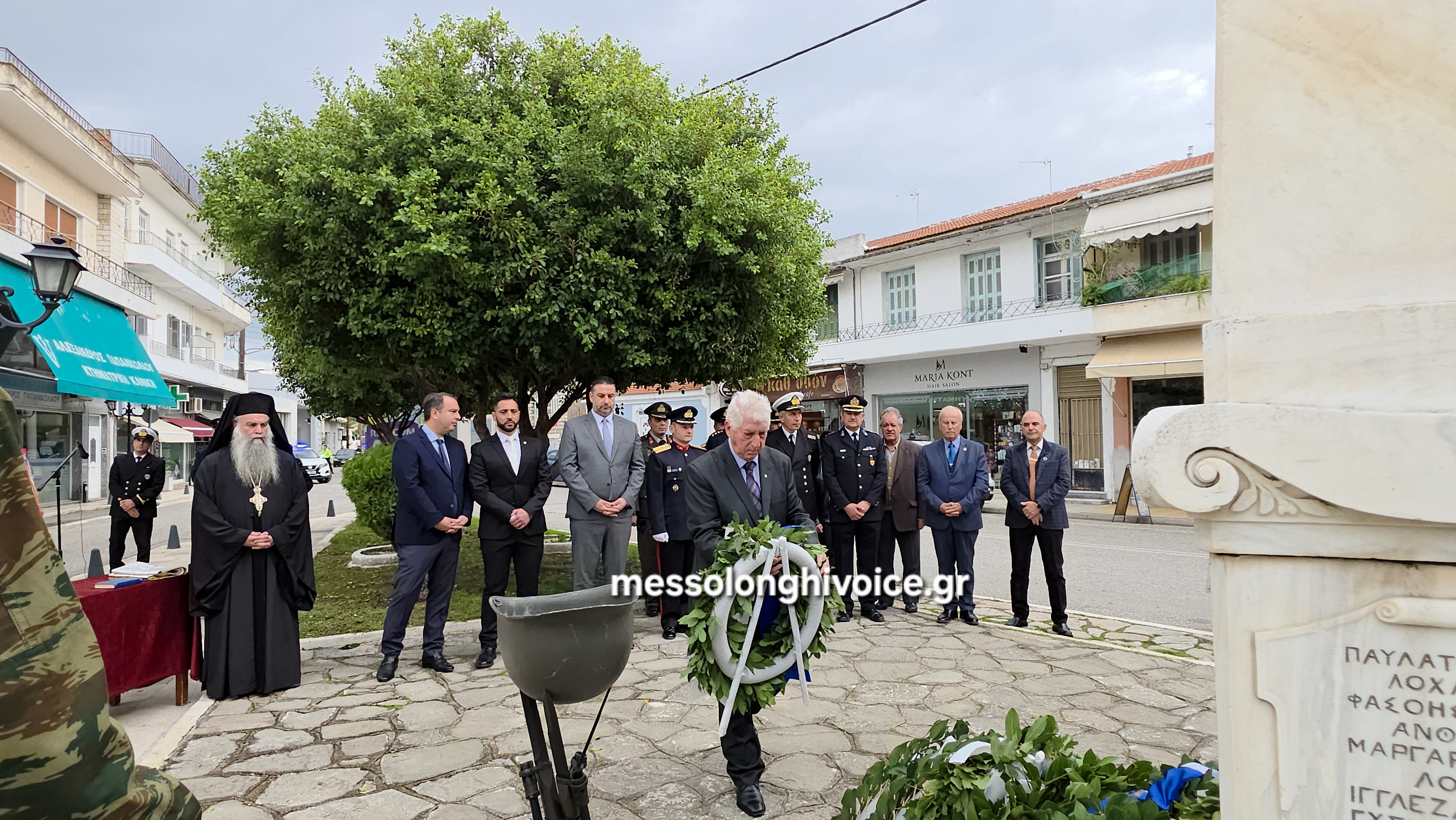 Ακολούθησε κατάθεση στεφάνων στο Ηρώο Πεσόντων στο Τρίγωνο Μεσολογγίου, όπου αποδόθηκε φόρος τιμής σε όλους όσοι έπεσαν υπέρ της πατρίδας.