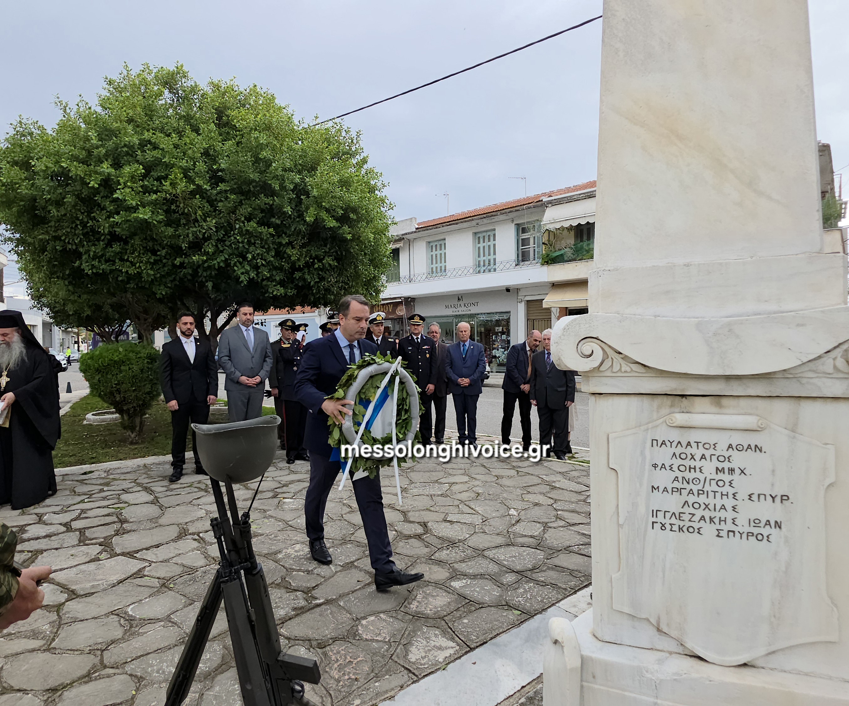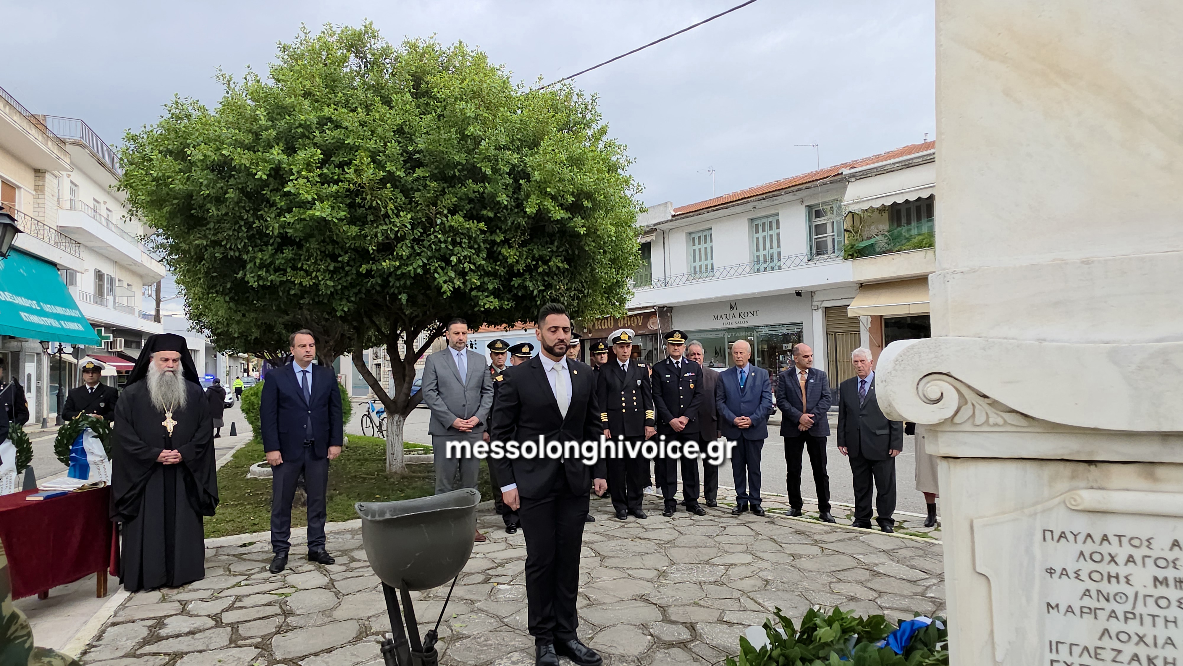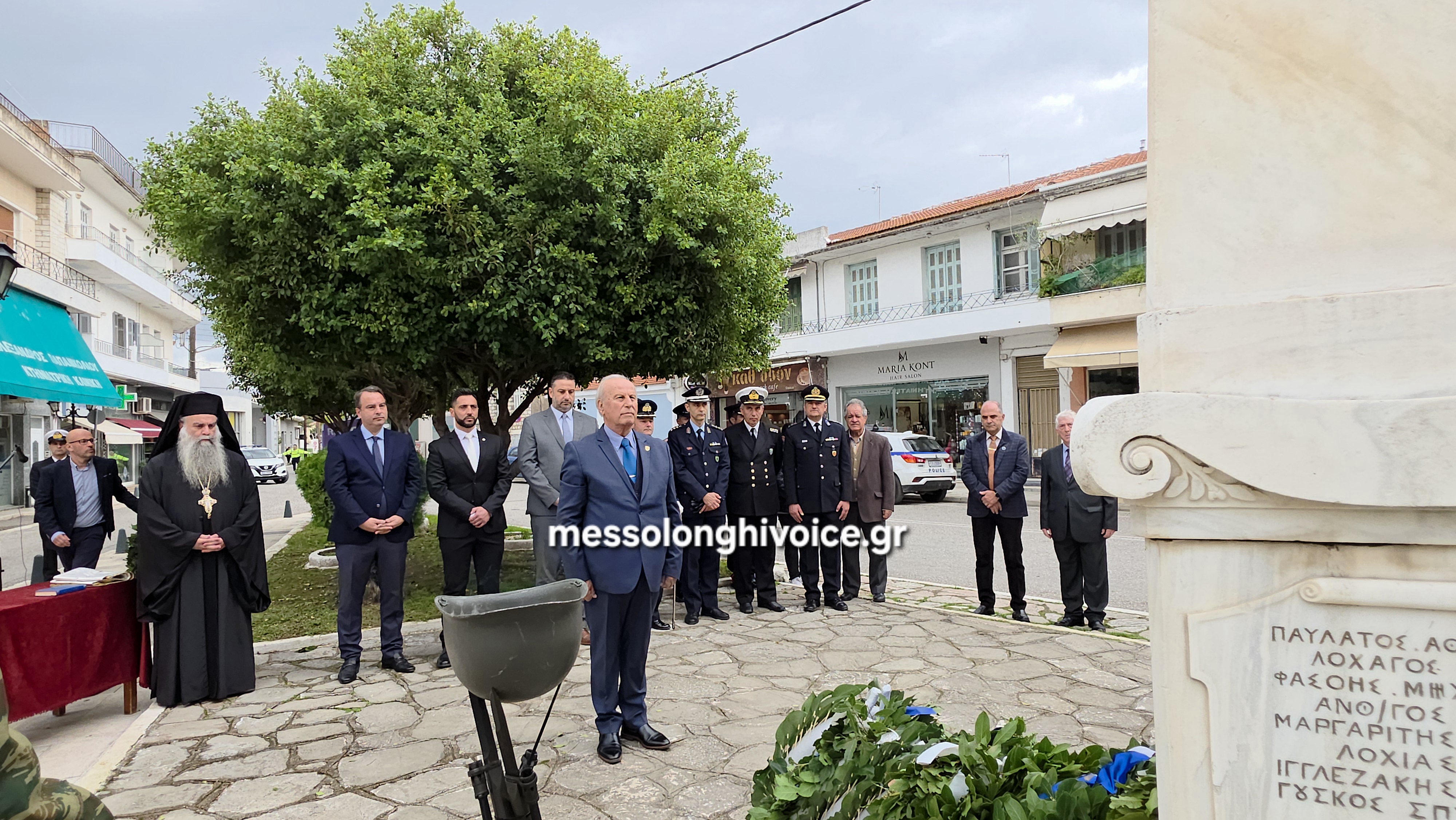 Ακολούθησε κατάθεση στεφάνων στο Ηρώο Πεσόντων στο Τρίγωνο Μεσολογγίου, όπου αποδόθηκε φόρος τιμής σε όλους όσοι έπεσαν υπέρ της πατρίδας.