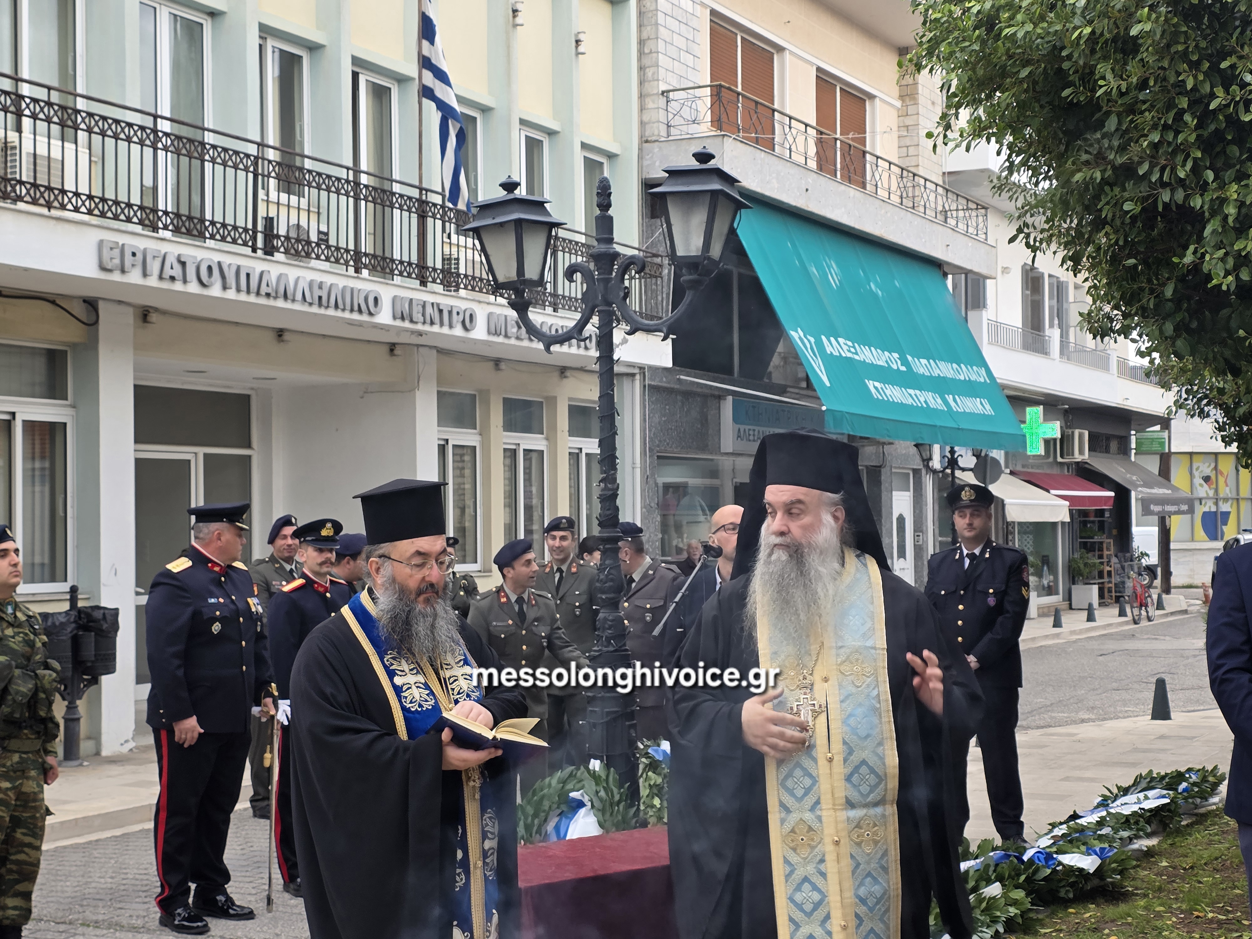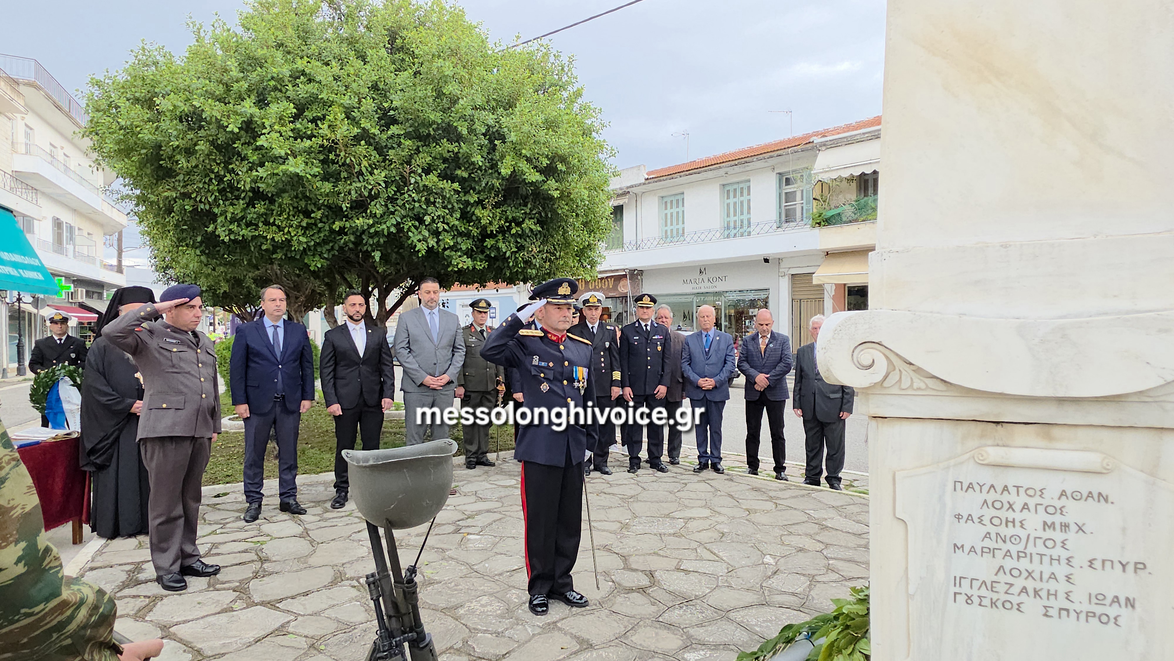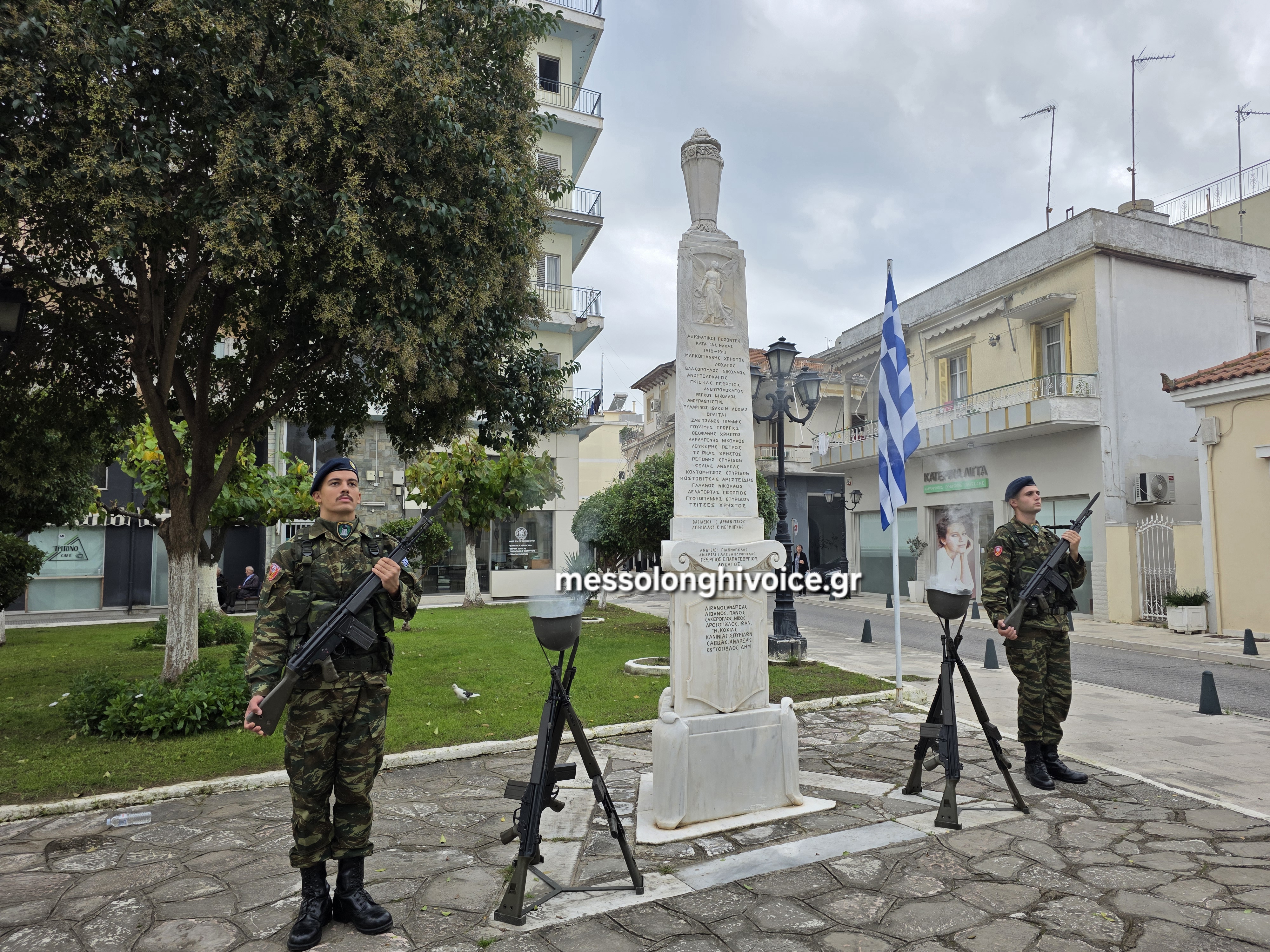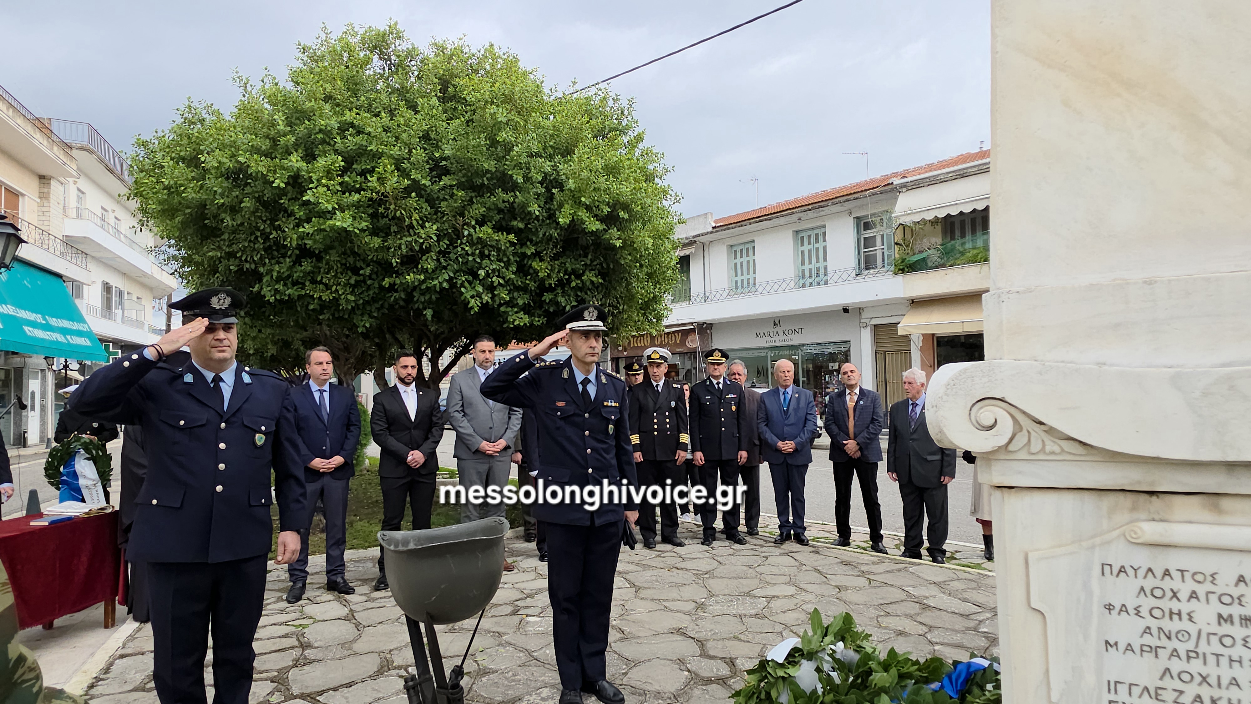 Ακολούθησε κατάθεση στεφάνων στο Ηρώο Πεσόντων στο Τρίγωνο Μεσολογγίου, όπου αποδόθηκε φόρος τιμής σε όλους όσοι έπεσαν υπέρ της πατρίδας.