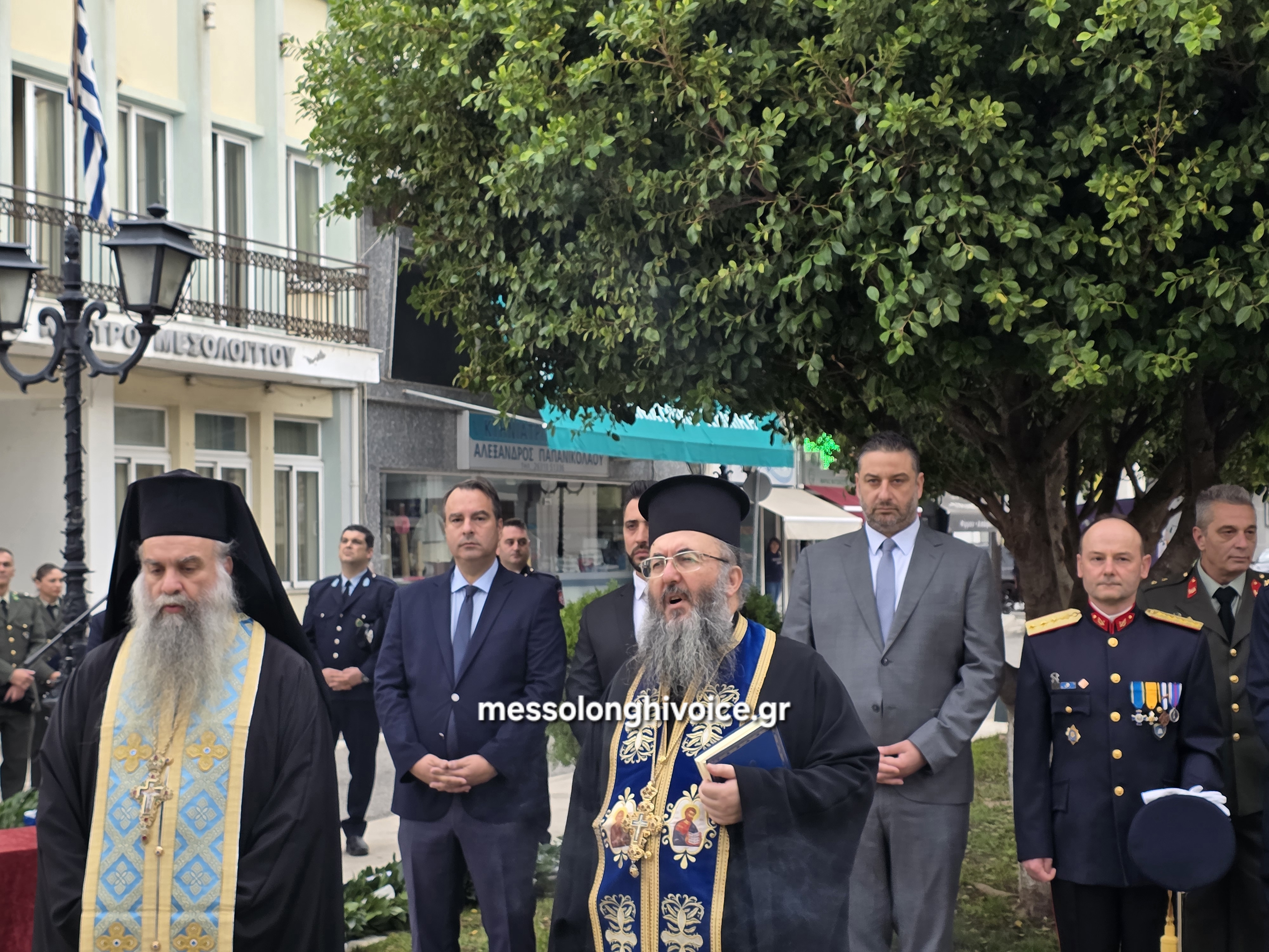 Με την αρμόζουσα επισημότητα τιμήθηκε σήμερα στο Μεσολόγγι η εορτή των Ενόπλων Δυνάμεων. Οι εκδηλώσεις ξεκίνησαν με τη δοξολογία που τελέστηκε στον Ιερό Ναό Αγίας Παρασκευής, παρουσία των τοπικών αρχών, φορέων και πολιτών.
