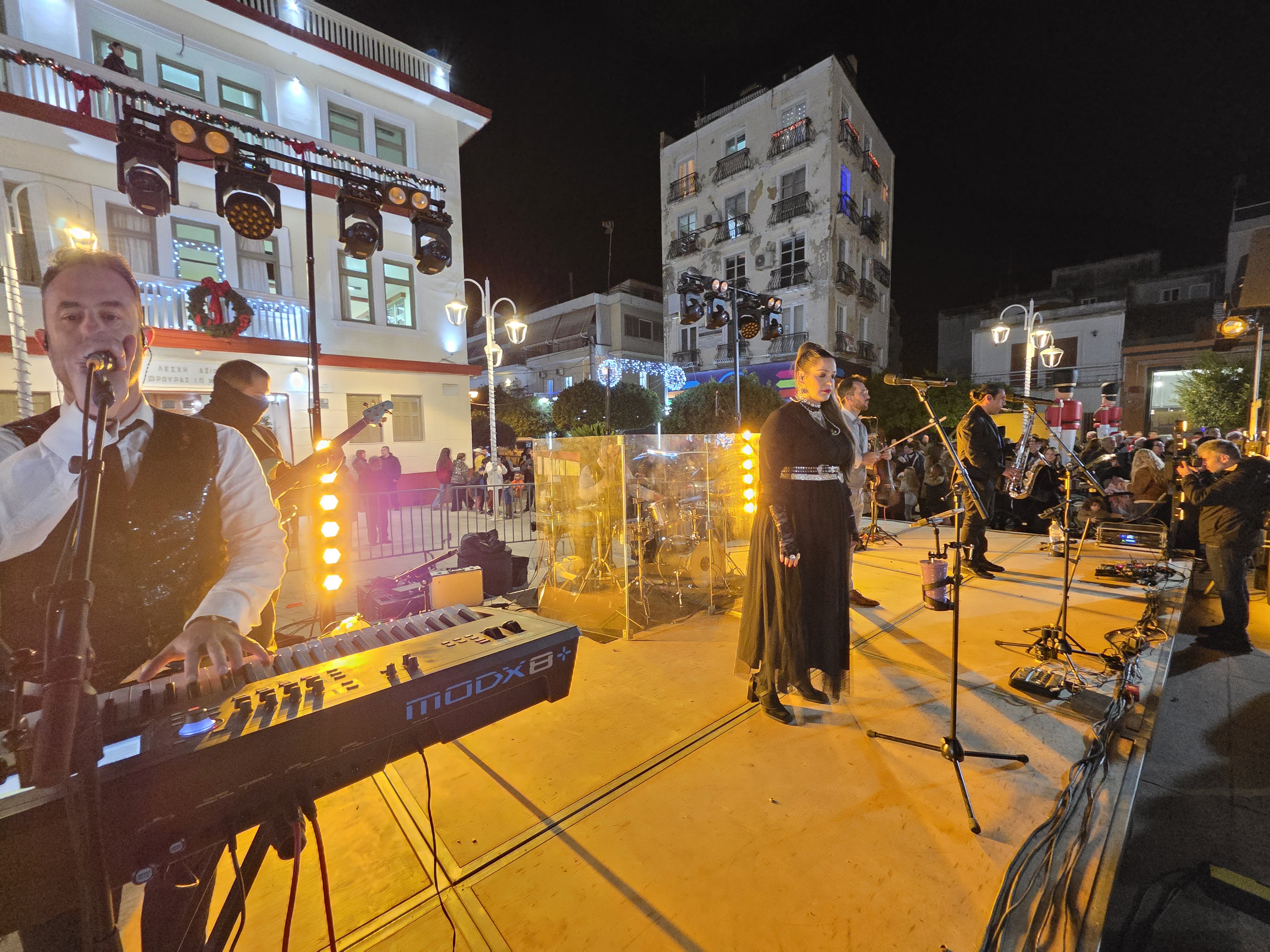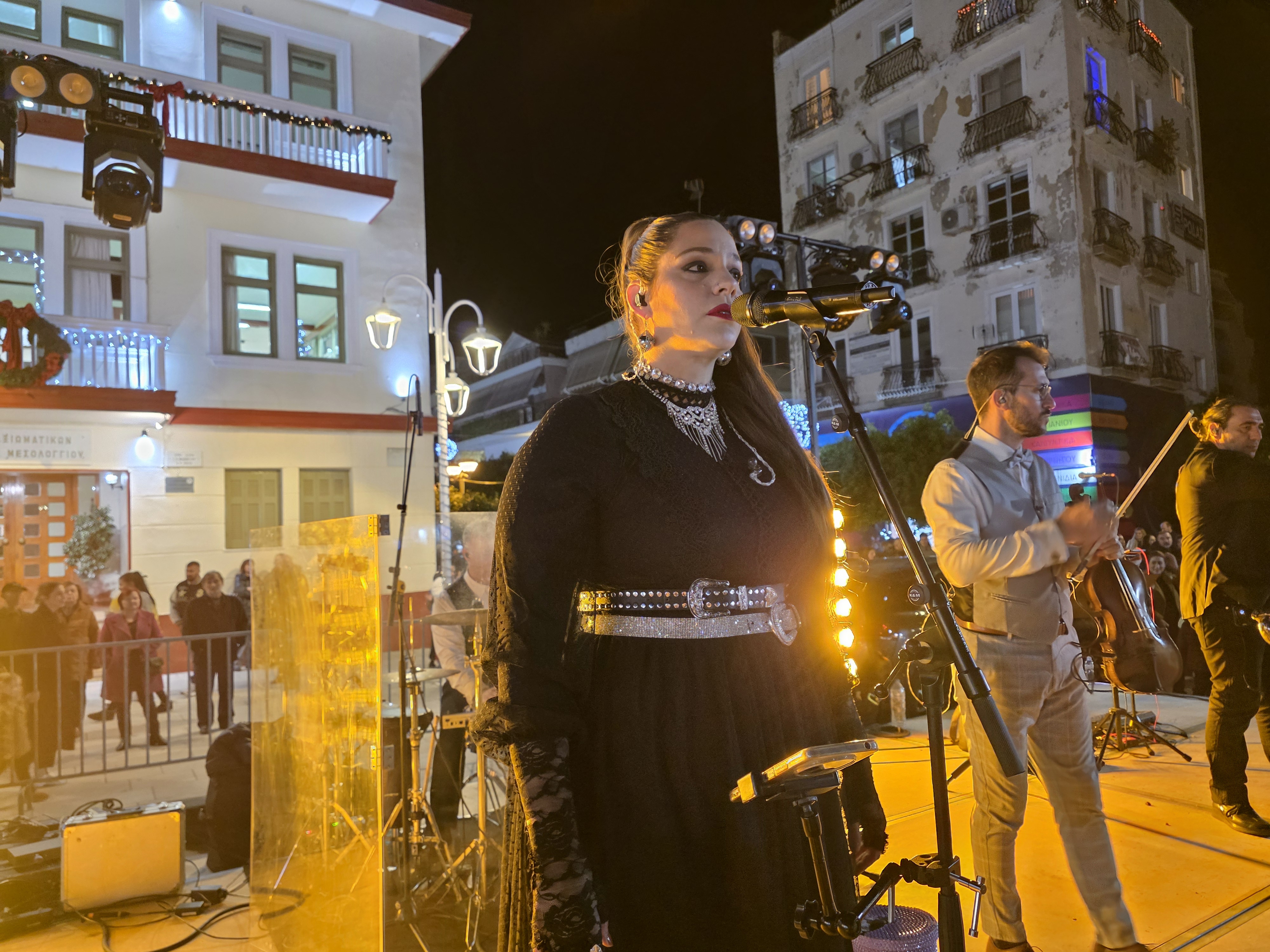 Τη γιορτινή ατμόσφαιρα ενίσχυσαν οι χριστουγεννιάτικες μελωδίες της Φιλαρμονικής του Δήμου «Χρήστος Καψάλης», που συνόδευσαν μουσικά τη βραδιά, ενώ ακολούθησε ζωντανό μουσικό πρόγραμμα από το αγαπημένο συγκρότημα PassepartouT, το οποίο ξεσήκωσε το κοινό.
