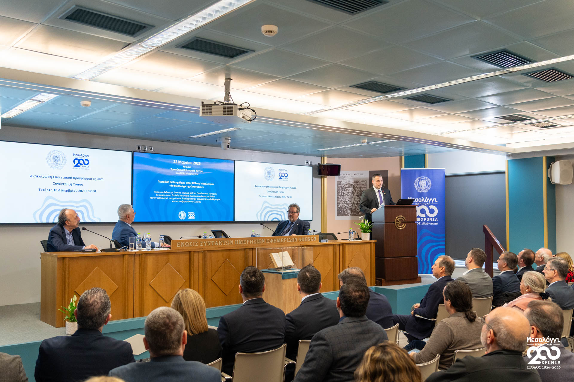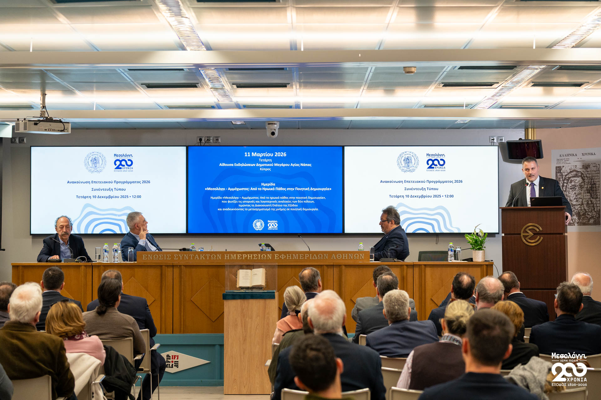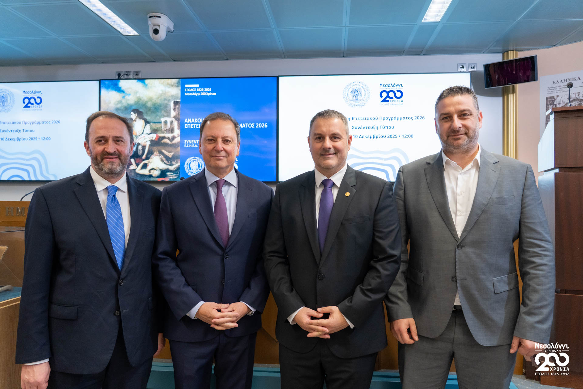 Σήμερα, Τετάρτη 10 Δεκεμβρίου 2025, στην αίθουσα «Γιώργος Καράντζας» της ΕΣΗΕΑ, πραγματοποιήθηκε συνέντευξη Τύπου του Δημάρχου Ιεράς Πόλεως Μεσολογγίου, Σπυρίδωνος Β. Διαμαντοπούλου, κατά την οποία παρουσιάστηκε το πρόγραμμα εκδηλώσεων για τη Διακοσιοστή Επέτειο της Εξόδου. Τη συνέντευξη Τύπου συντόνισε ο δημοσιογράφος Κωστής Τσιακανίκας, ενώ η εκδήλωση συνδιοργανώθηκε από τον Δήμο Ιεράς Πόλεως Μεσολογγίου, την ΕΣΗΕΑ και το Μορφωτικό Ίδρυμα της ΕΣΗΕΑ.