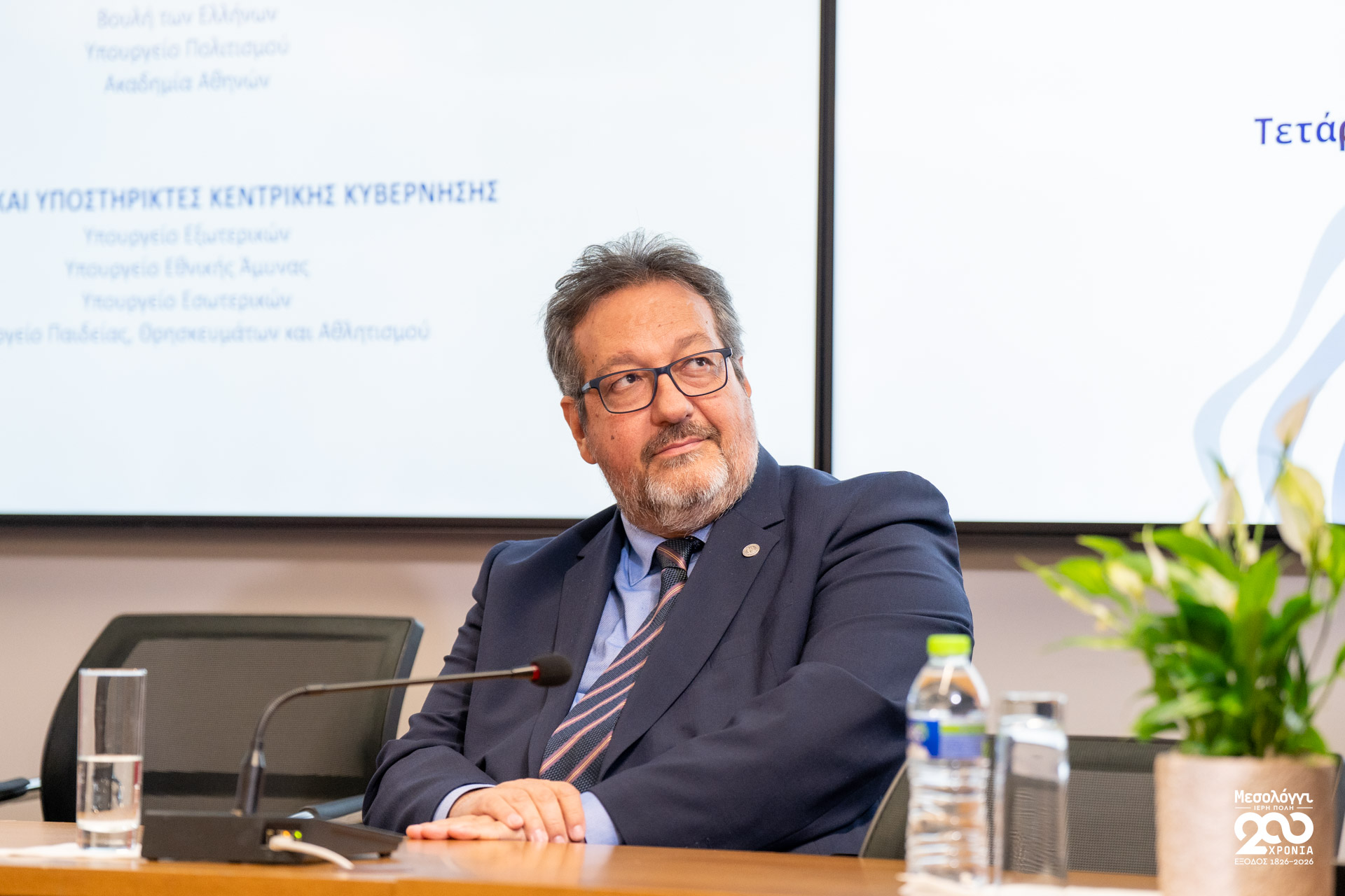 Στη συνέχεια, ο Λευτέρης Σκιαδάς, μέλος του Μορφωτικού Ιδρύματος της ΕΣΗΕΑ, μίλησε για τον ρόλο της Ένωσης στη διάδοση του ιστορικού μηνύματος της Εξόδου, υπογραμμίζοντας τη σημασία της δημοσιογραφικής κοινότητας στη διαχρονική ανάδειξη του γεγονότος.