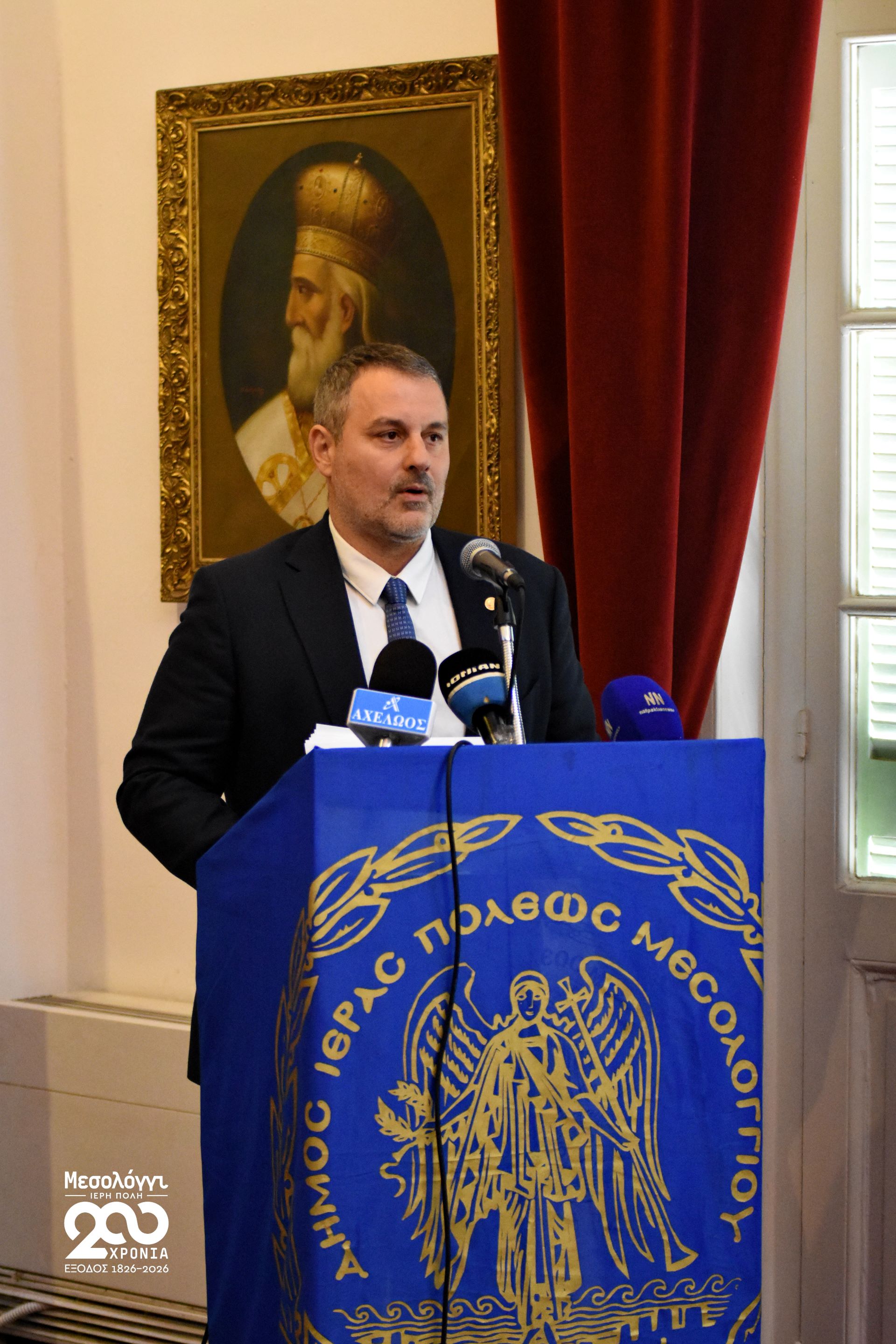 Στον κεντρικό χώρο του Μουσείου Ιστορίας & Τέχνης, μπροστά από την εμβληματική Εικόνα της Εξόδου, ο Δήμαρχος, Σπυρίδων Διαμαντόπουλος, παρουσίασε το συνολικό πλαίσιο των επετειακών δράσεων που έχουν διοργανωθεί και θα πραγματοποιηθούν καθ’ όλη τη διάρκεια του 2026.