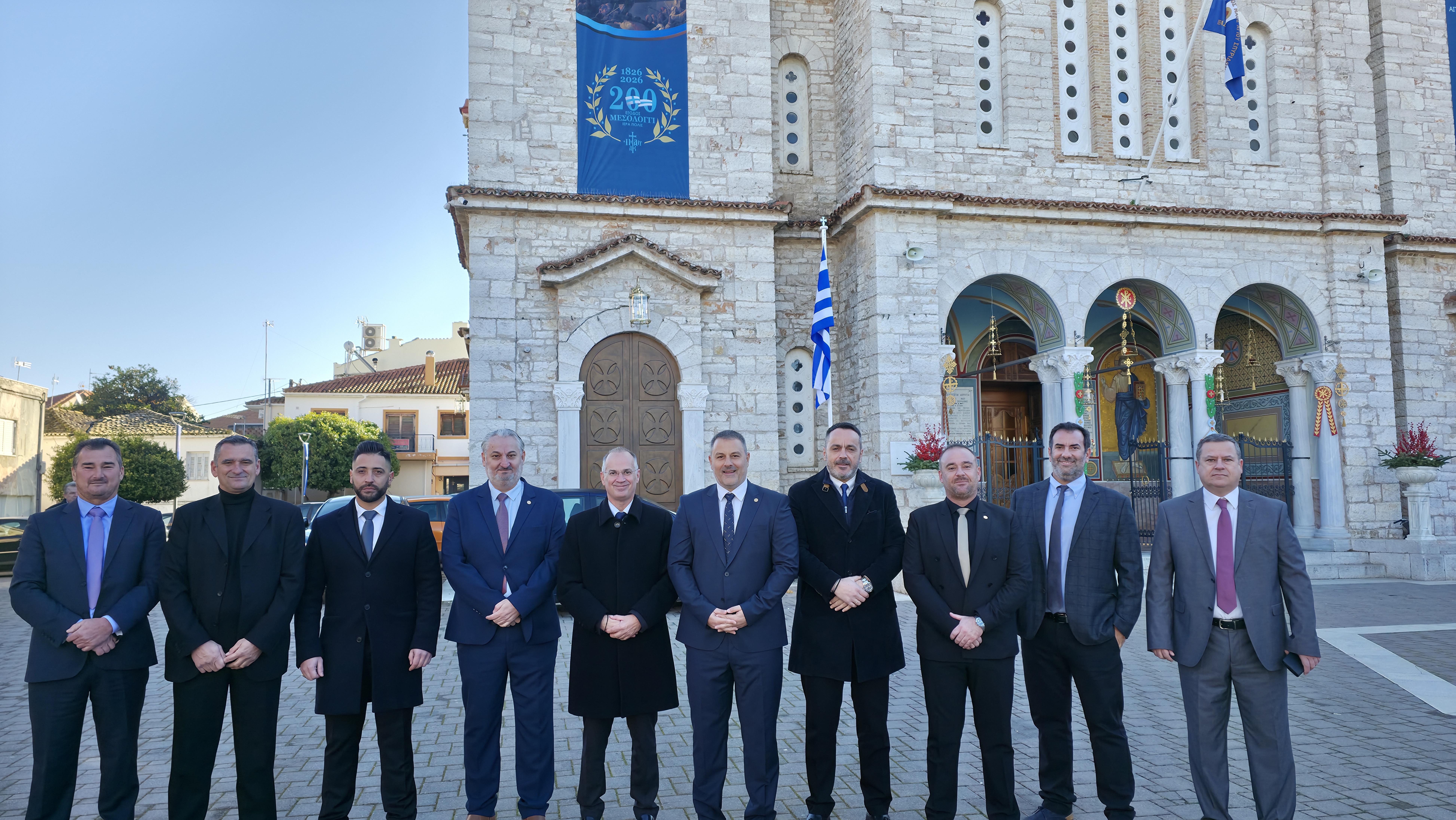 Της δοξολογίας προέστη ο Πρωτοσύγκελλος της Ιεράς Μητροπόλεως Αιτωλίας και Ακαρνανίας, Αρχιμανδρίτης Θεόκλητος Ράπτης, παρουσία εκπροσώπων της πολιτικής και αυτοδιοικητικής ζωής του τόπου. Μεταξύ αυτών, ο Χωρικός Αντιπεριφερειάρχης Π.Ε. Αιτωλοακαρνανίας Αθανάσιος Μαυρομμάτης, ο Δήμαρχος Ιερής Πόλεως Μεσολογγίου Σπυρίδων Διαμαντόπουλος, οι Αντιπεριφερειάρχες Νικόλαος Κατσακιώρης και Στυλιανός Μπλέτσας, καθώς και εκπρόσωποι των Σωμάτων Ασφαλείας. Η παρουσία πλήθους πολιτών και τοπικών φορέων ανέδειξε το κλίμα ενότητας και συλλογικότητας.