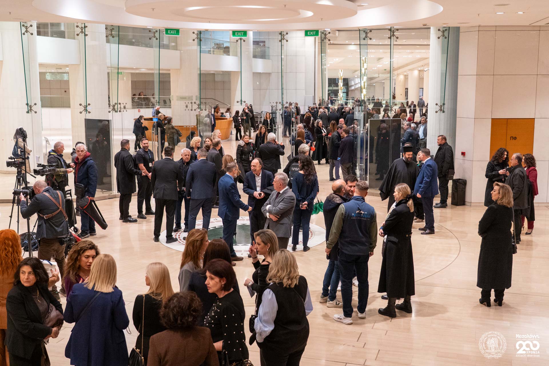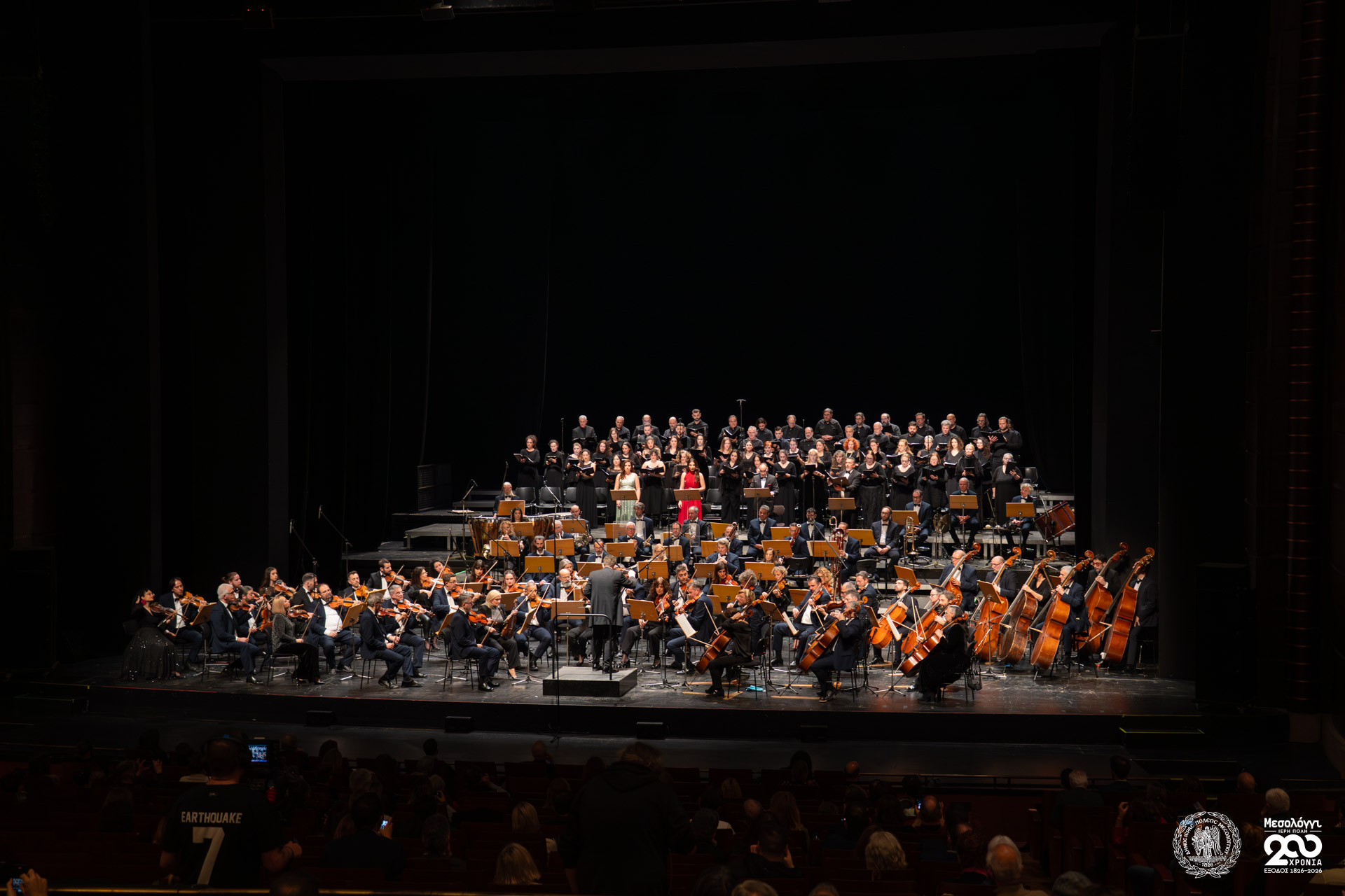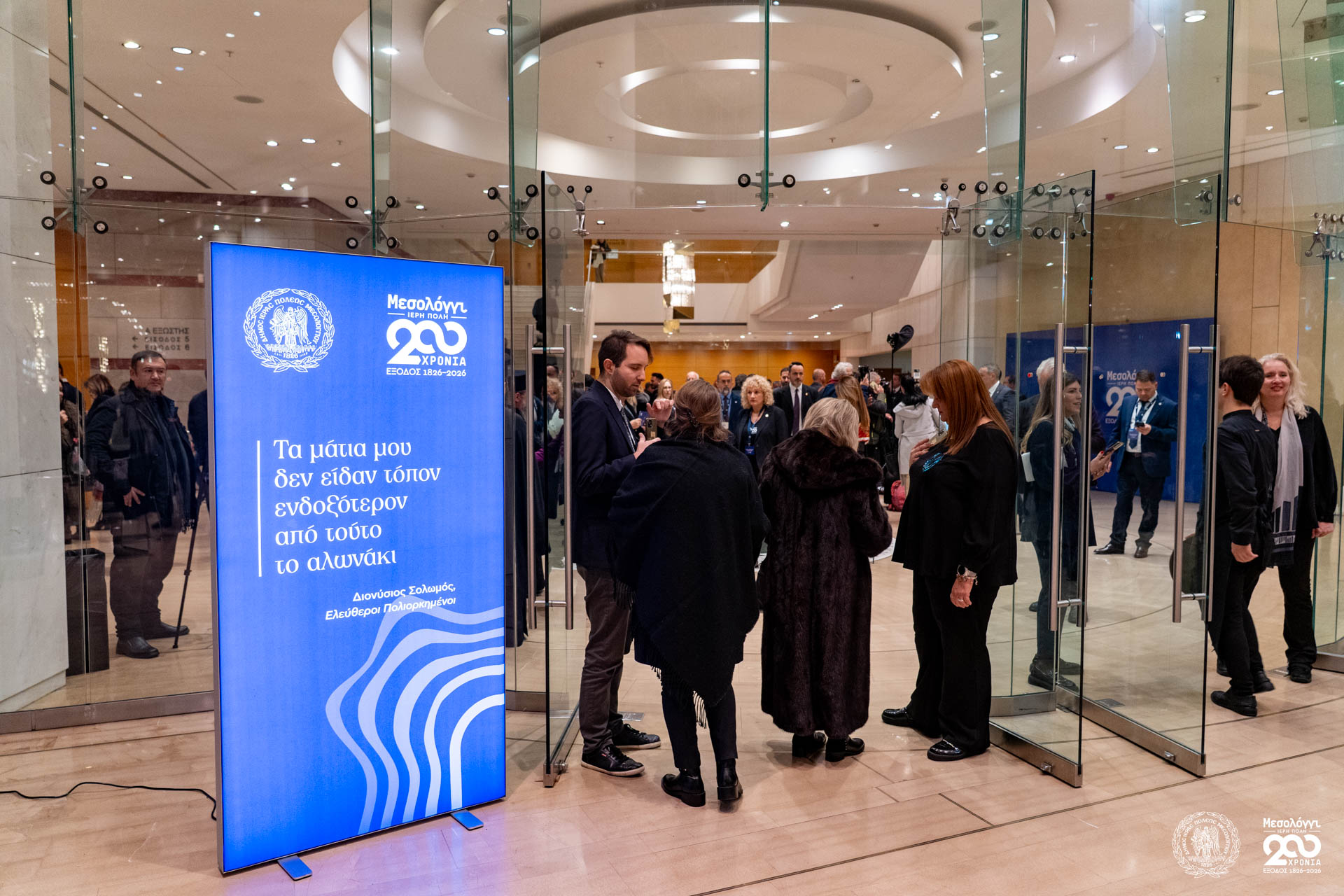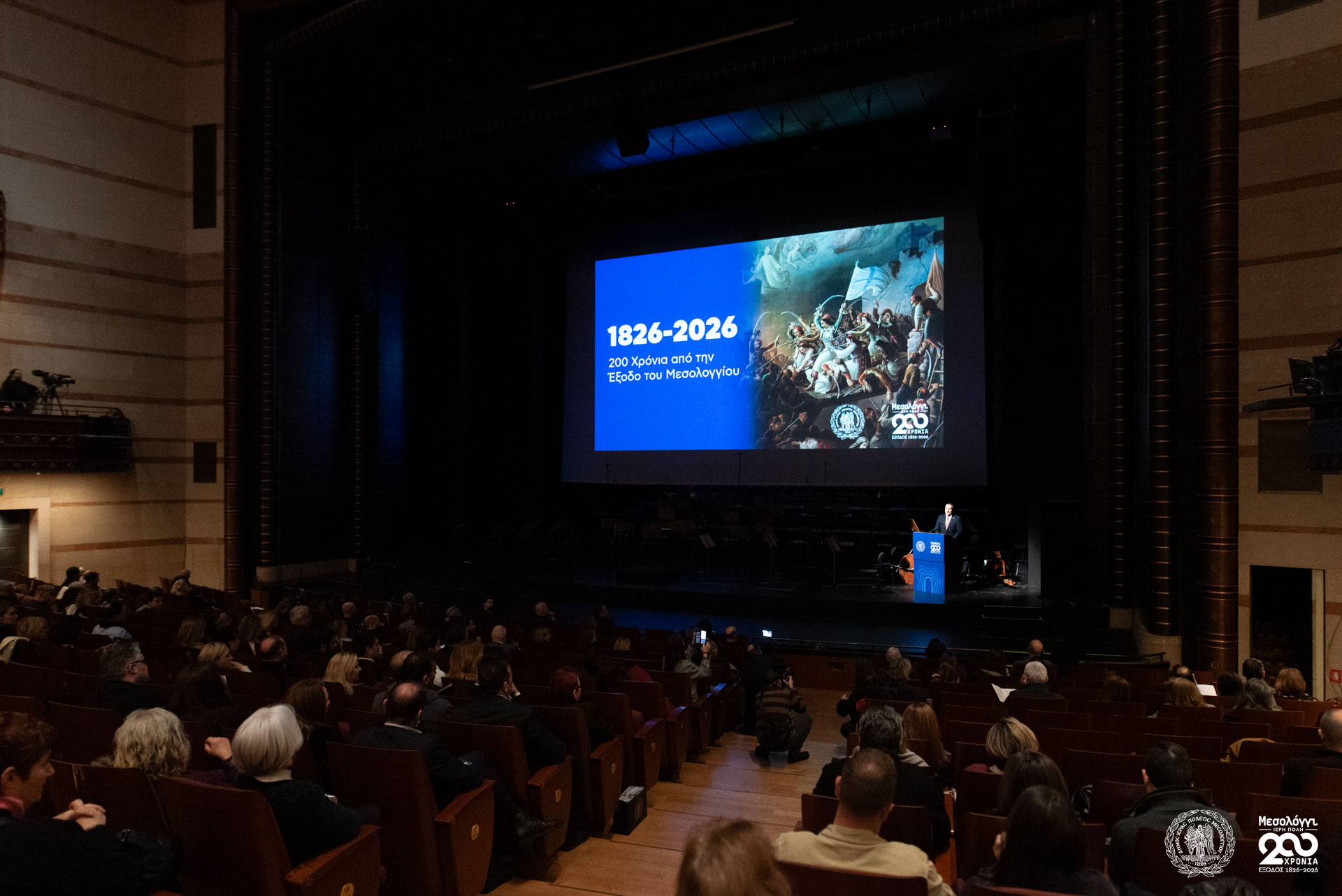 Παρά τις δύσκολες καιρικές συνθήκες, πλήθος κόσμου από το Μεσολόγγι, τη Δυτική Ελλάδα και ολόκληρο το λεκανοπέδιο της Αττικής προσήλθε στην εκδήλωση, γεμίζοντας την αίθουσα του Μεγάρου Μουσικής Αθηνών και επιβεβαιώνοντας το έντονο ενδιαφέρον του κοινού για την έναρξη των επετειακών εκδηλώσεων.
