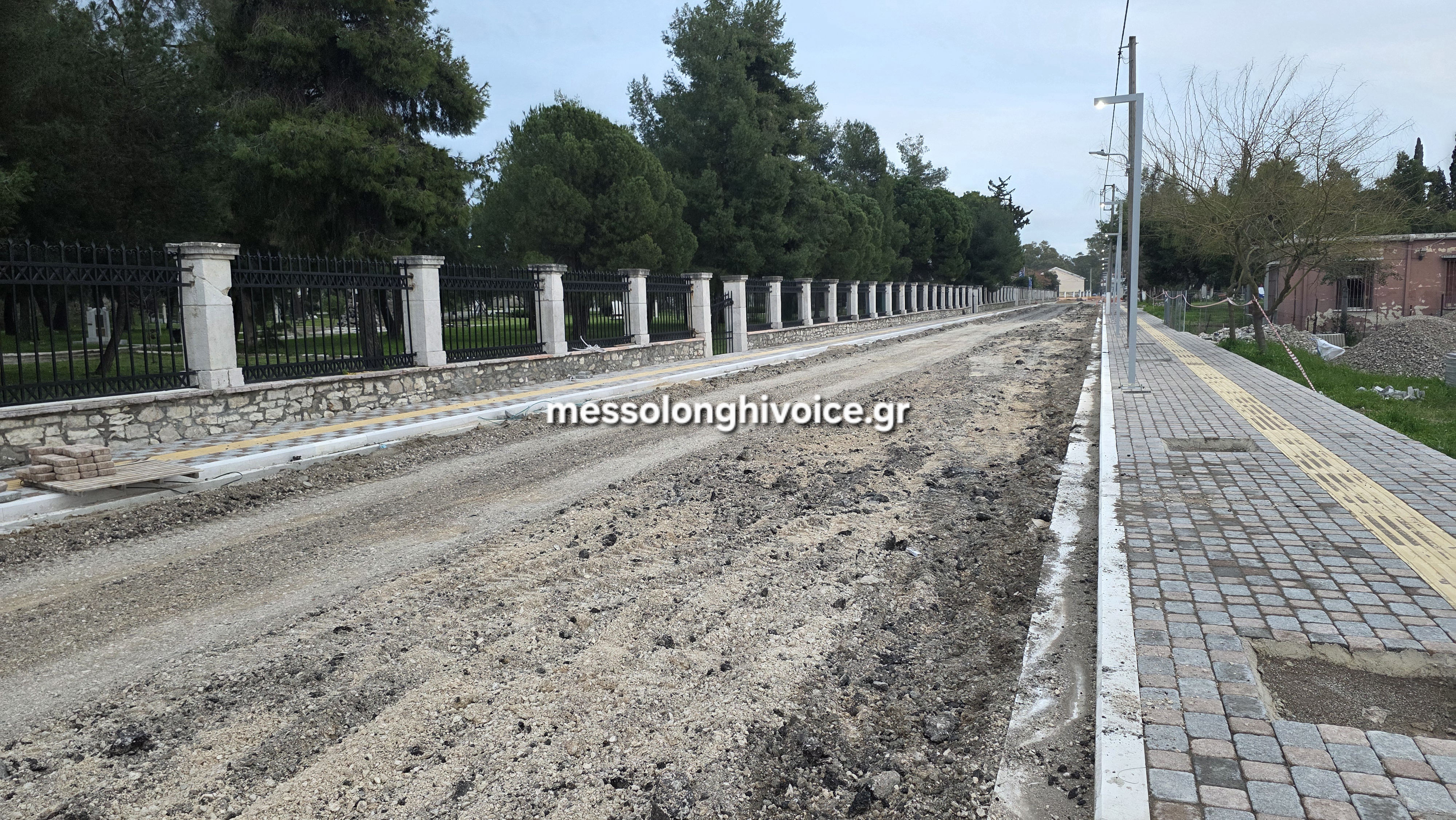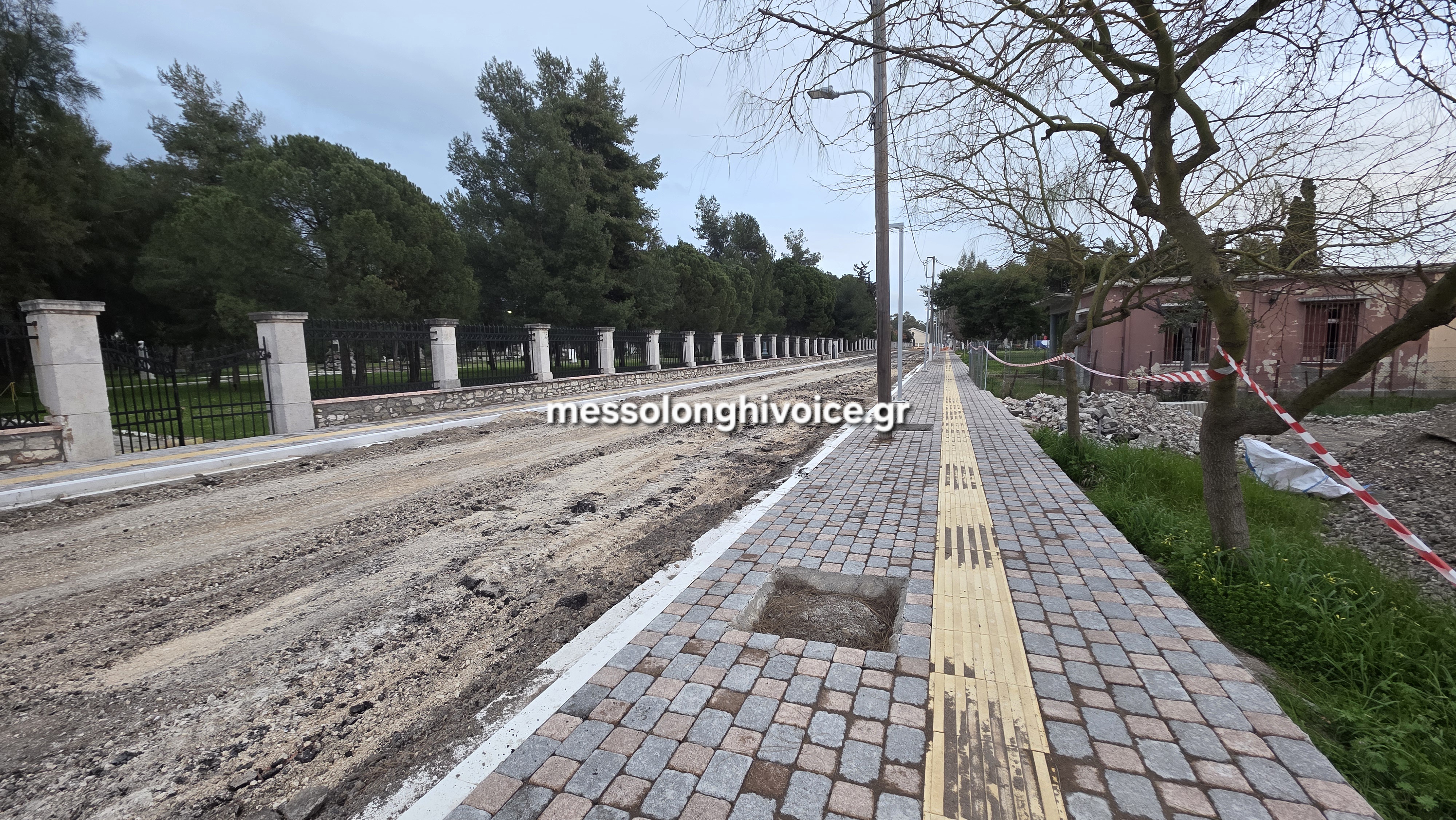 Με γοργούς ρυθμούς συνεχίζονται οι παρεμβάσεις έμπροσθεν του Κήπος των Ηρώων, στην οδό Χατζηκώστα, στο Μεσολόγγι.