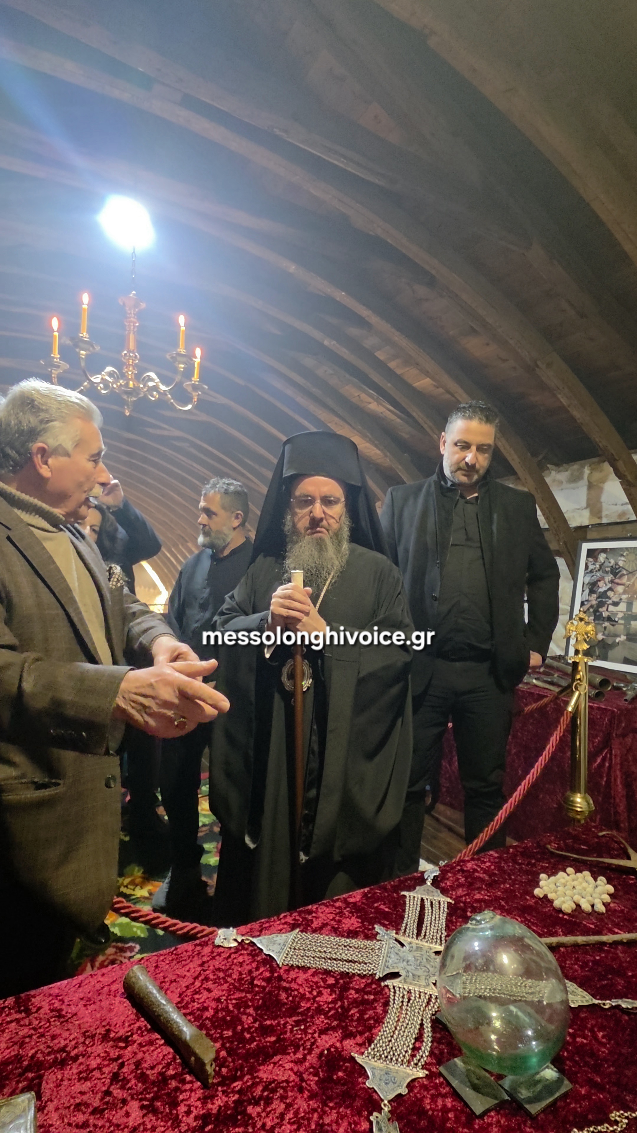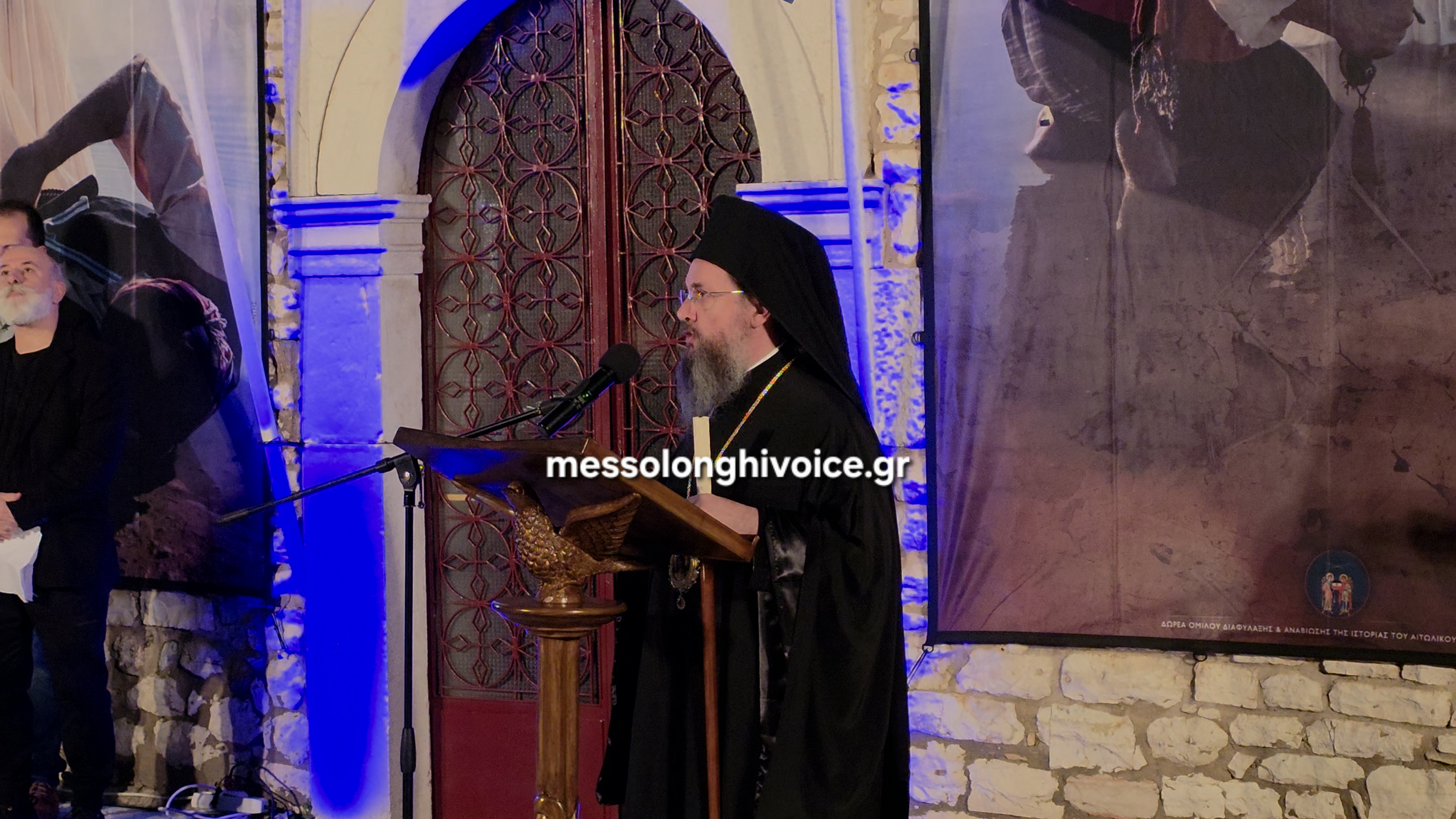 Τα εγκαίνια τέλεσε ο Σεβασμιώτατος Μητροπολίτης Αιτωλίας και Ακαρνανίας κ.κ. Δαμασκηνός, ο οποίος στον χαιρετισμό του αναφέρθηκε στη σημασία της ιστορικής μνήμης και της διατήρησης της πολιτιστικής μας κληρονομιάς, υπογραμμίζοντας τον ρόλο της Εκκλησίας και των τοπικών φορέων στη διαφύλαξη της ιστορικής ταυτότητας του τόπου.
