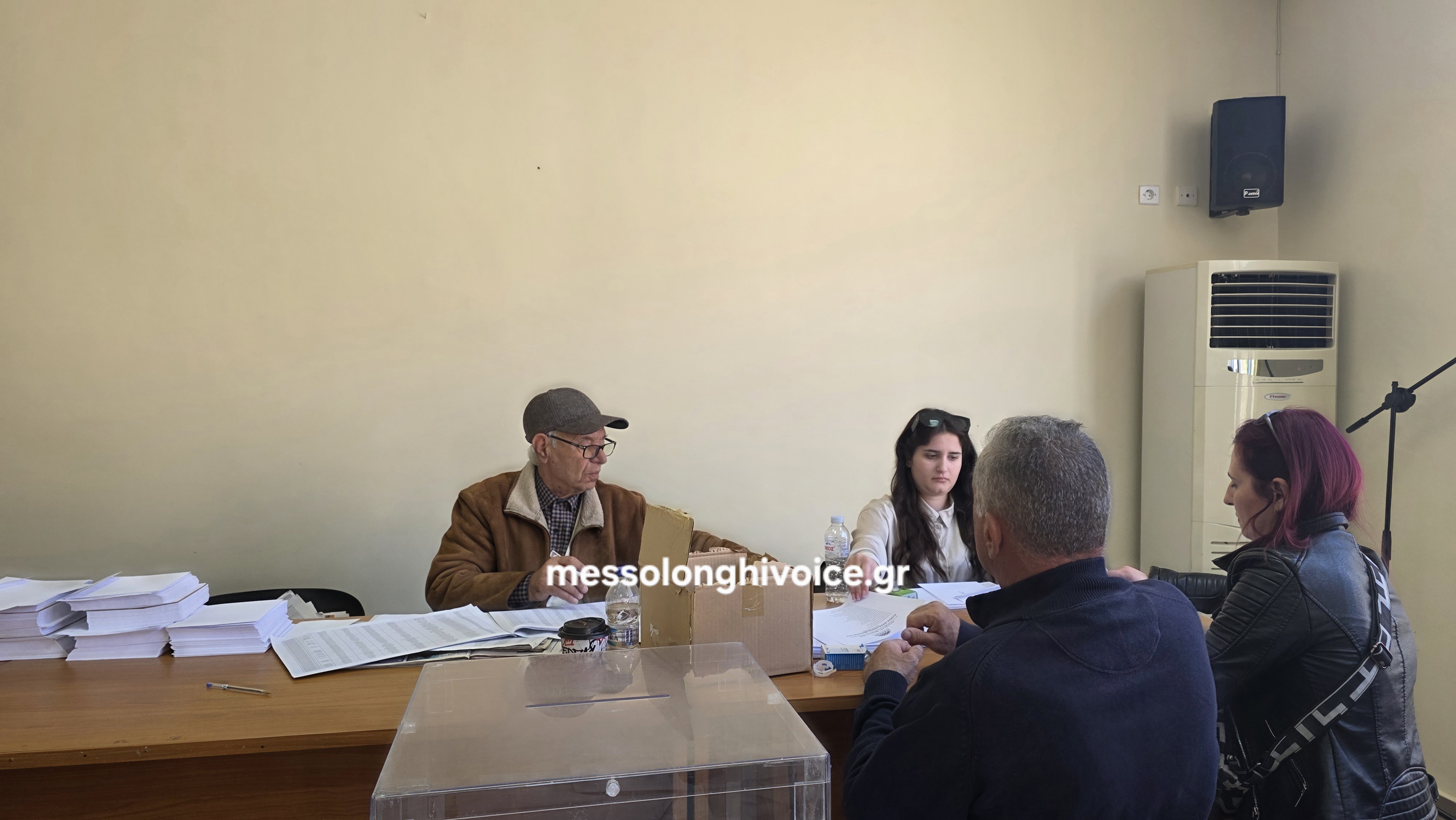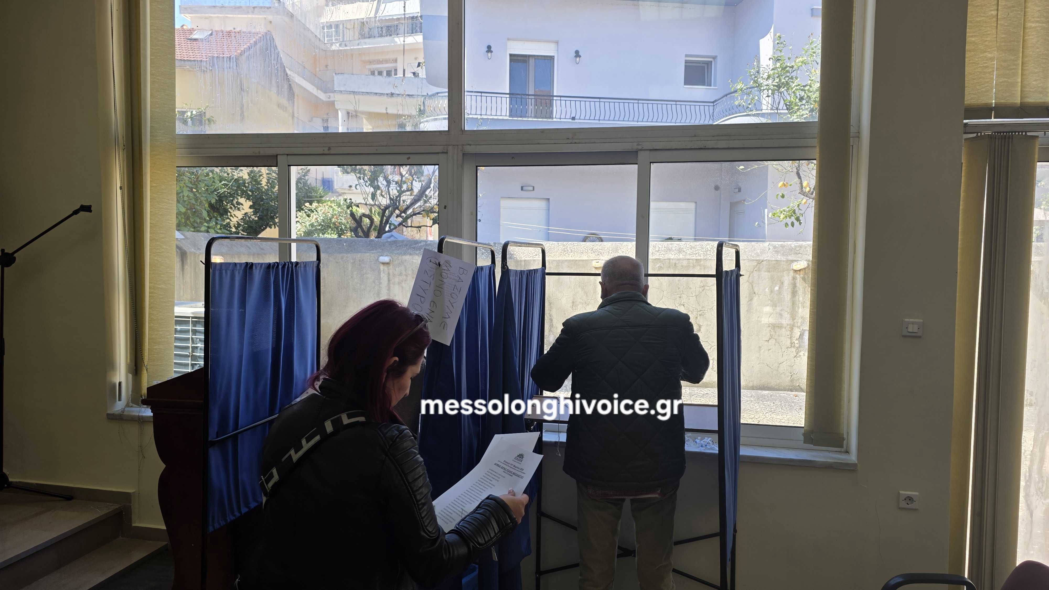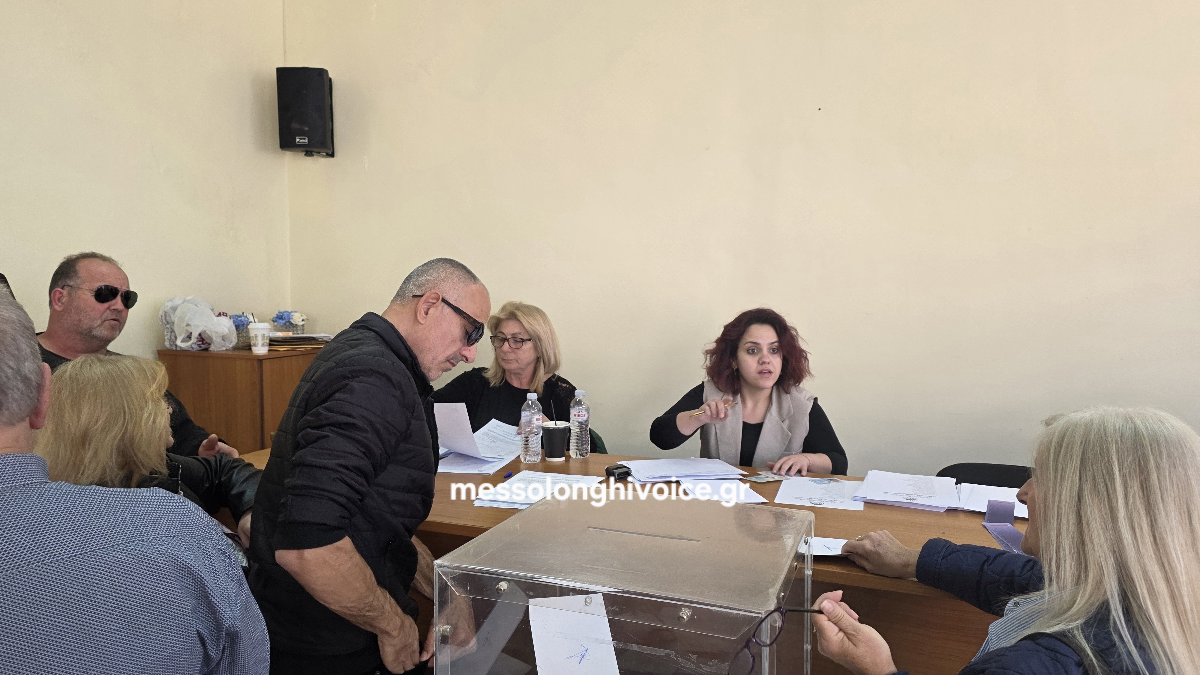 Οι εκλογές πραγματοποιούνται στο Εργατικό Κέντρο Μεσολογγίου, όπου μέλη και φίλοι του κόμματος προσέρχονται για να ασκήσουν το εκλογικό τους δικαίωμα.