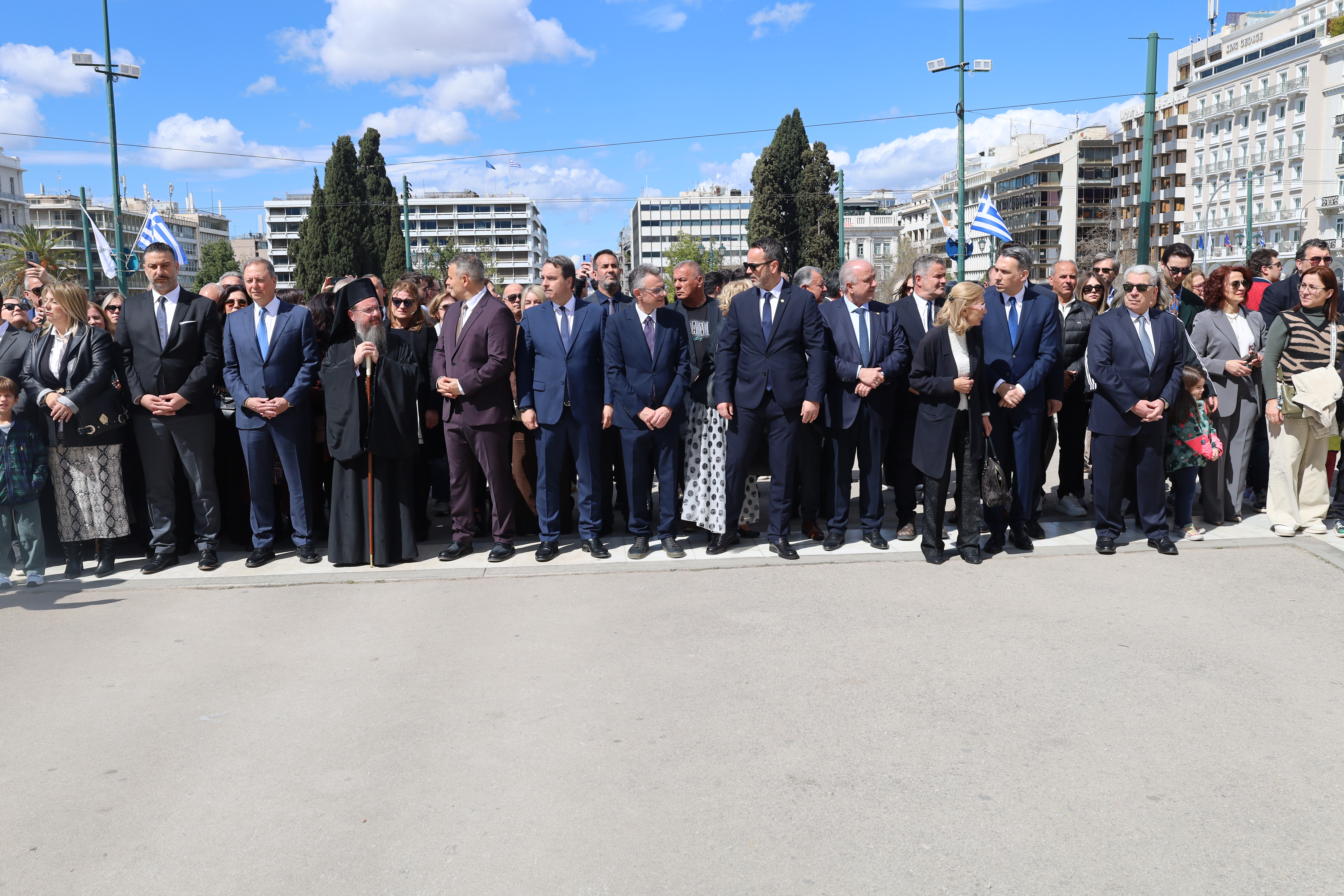 Η σημερινή σύναξη στον Μητροπολιτικό Ναό των Αθηνών αποτελεί ζωντανή μαρτυρία αυτής της ενότητας. Εκκλησία και Πολιτεία, ποιμένες και λαός, ενωμένοι σε μία κοινή προσευχή και μία κοινή μνήμη. Εδώ, στον ιερό αυτό χώρο, συναντώνται το παρελθόν με το παρόν, η θυσία με την ευθύνη, η μνήμη με την ελπίδα».