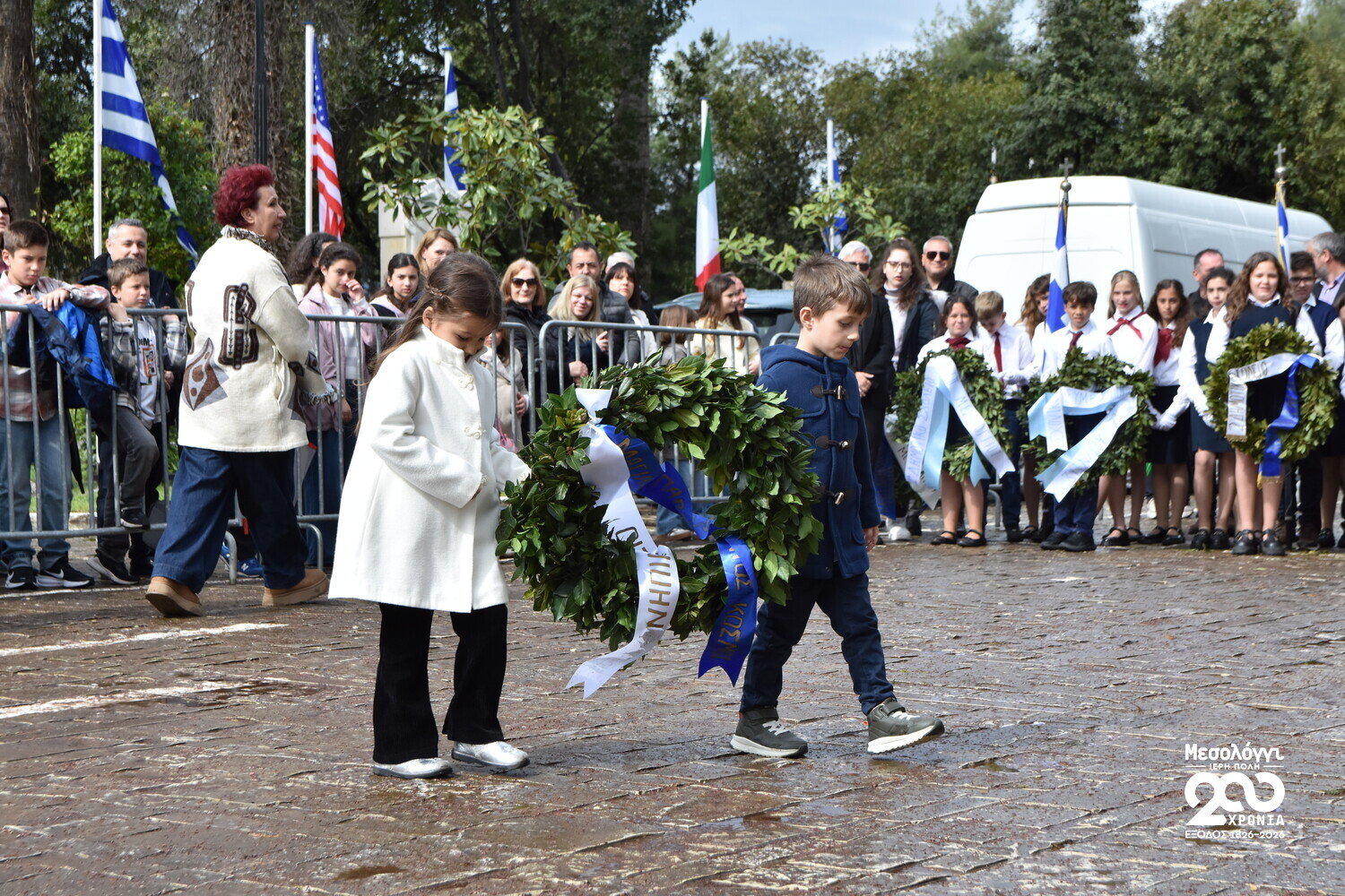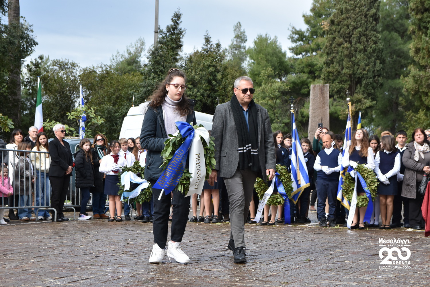 Στον Ιερό χώρο του Τύμβου των Ηρώων στον Κήπο των Ηρώων, πραγματοποιήθηκε η τελετή κατάθεσης στεφάνων. Η συμμετοχή της νέας γενιάς της πόλης μας αποτελεί την κορυφαία στιγμή της σημερινής ημέρας, υπογραμμίζοντας τη διατήρηση της ιστορικής μνήμης και των αξιών της αυτοθυσίας και της ελευθερίας που συμβολίζει η ηρωική Έξοδος.