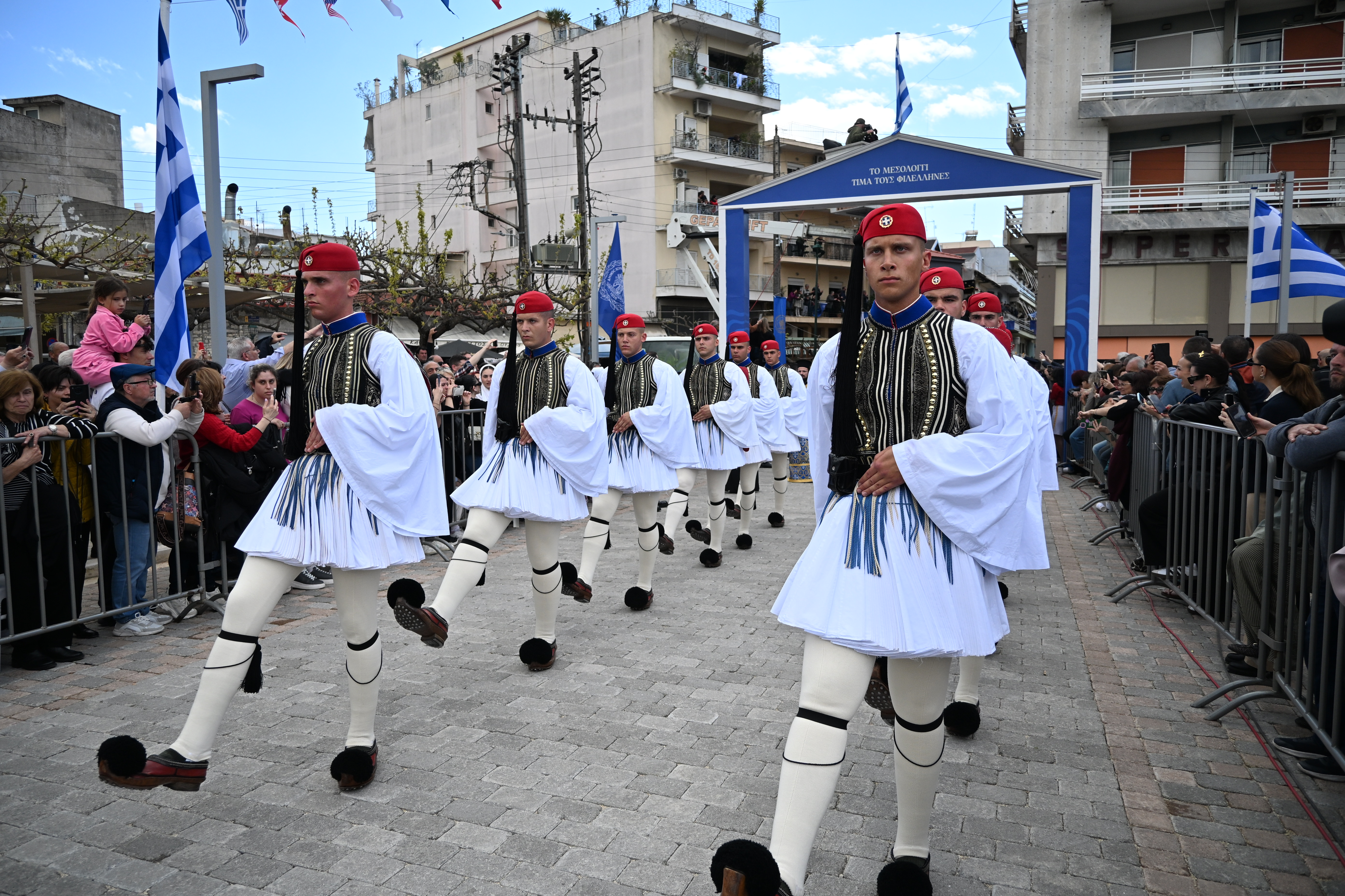 Η πρωινή πομπή των Εορτών Εξόδου στο Μεσολόγγι προσέφερε και φέτος ένα εντυπωσιακό θέαμα, γεμάτο συμβολισμό, συγκίνηση και ιστορική μνήμη. Πλήθος κόσμου κατέκλυσε τους δρόμους της πόλης, παρακολουθώντας τη μεγαλοπρεπή διαδρομή με τη συμμετοχή του Προέδρου της Δημοκρατίας, κ. Τασούλα, του πρωθυπουργού κ. Μητσοτάκη, υπουργών, υφυπουργών και ευρωβουλευτών, καθώς και συλλόγων, φιλαρμονικών και αρματωμένων ιστορικών αναπαραστατών, σε μια ζωντανή αναπαράσταση που τιμά την ηρωική θυσία των Ελεύθερων Πολιορκημένων.